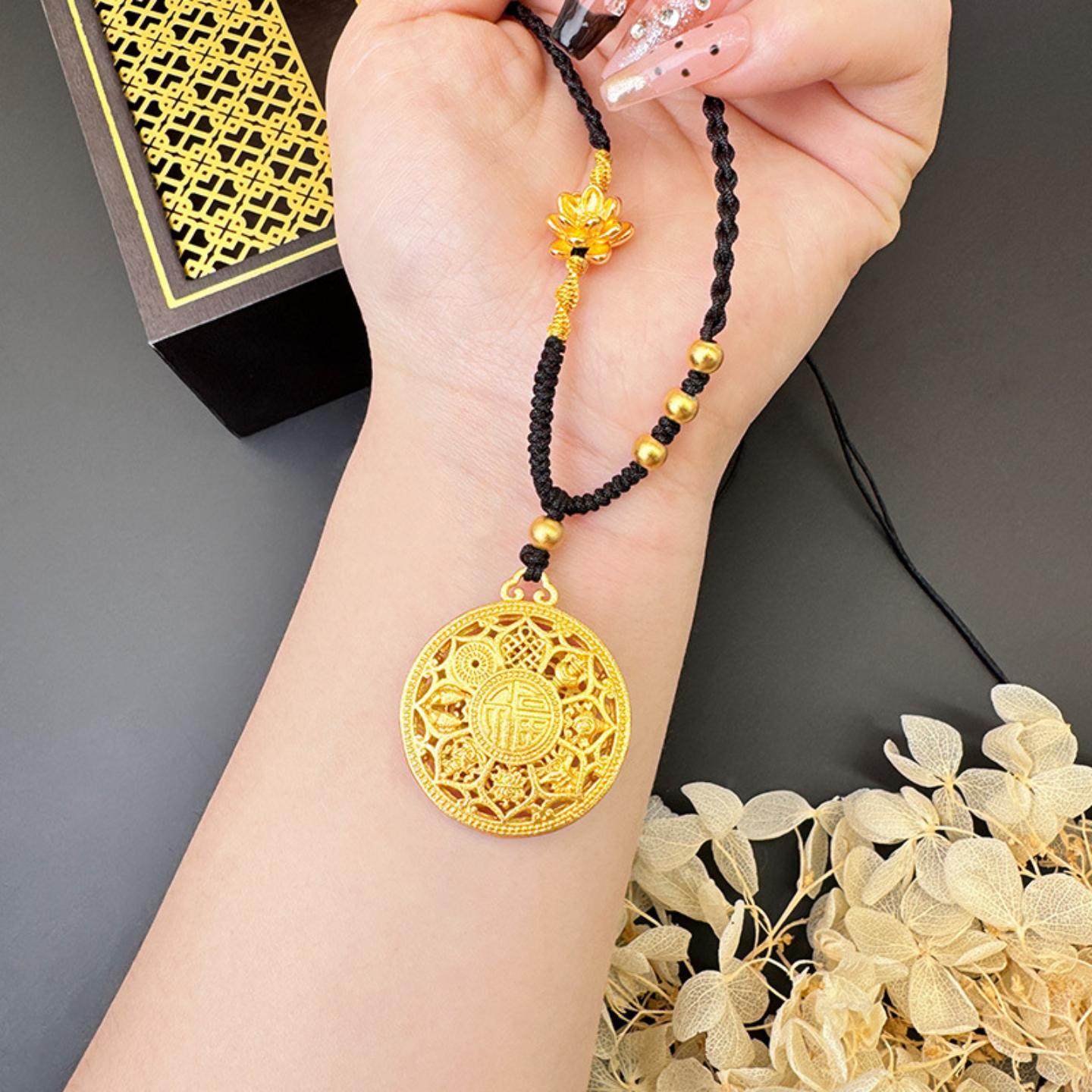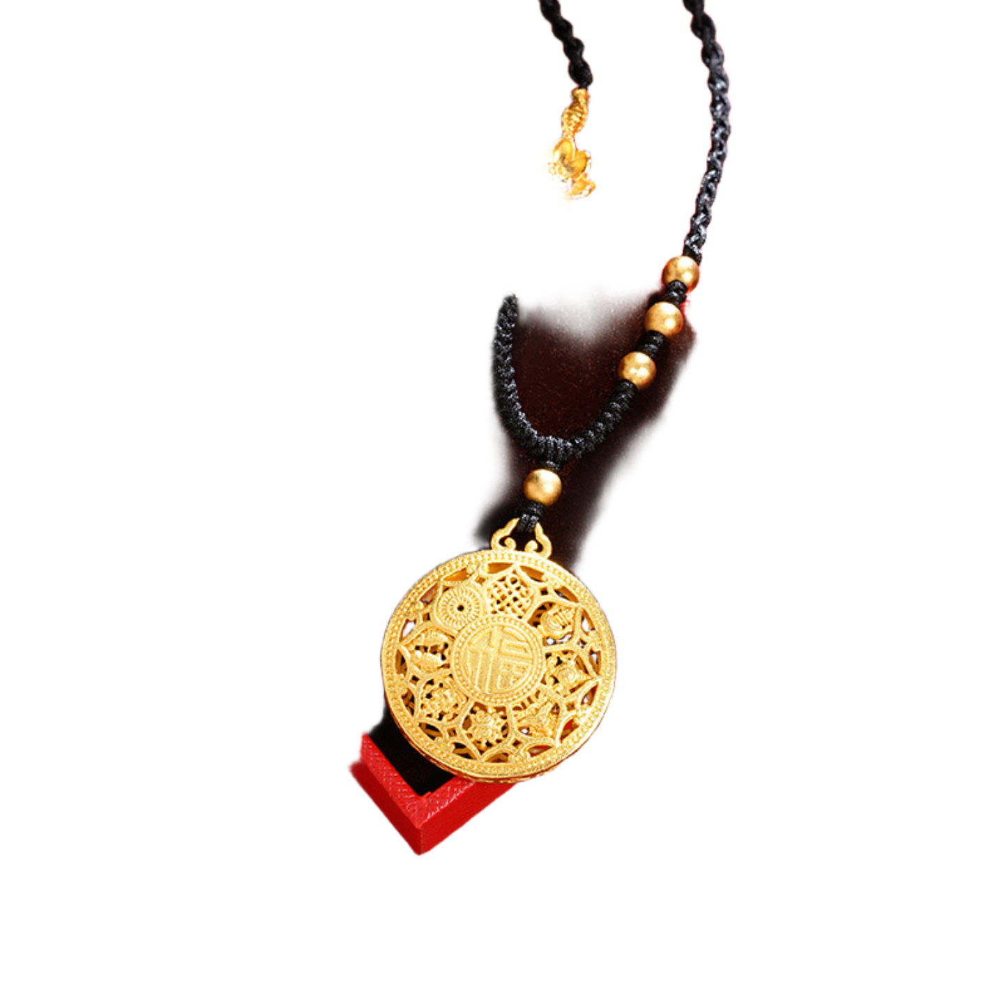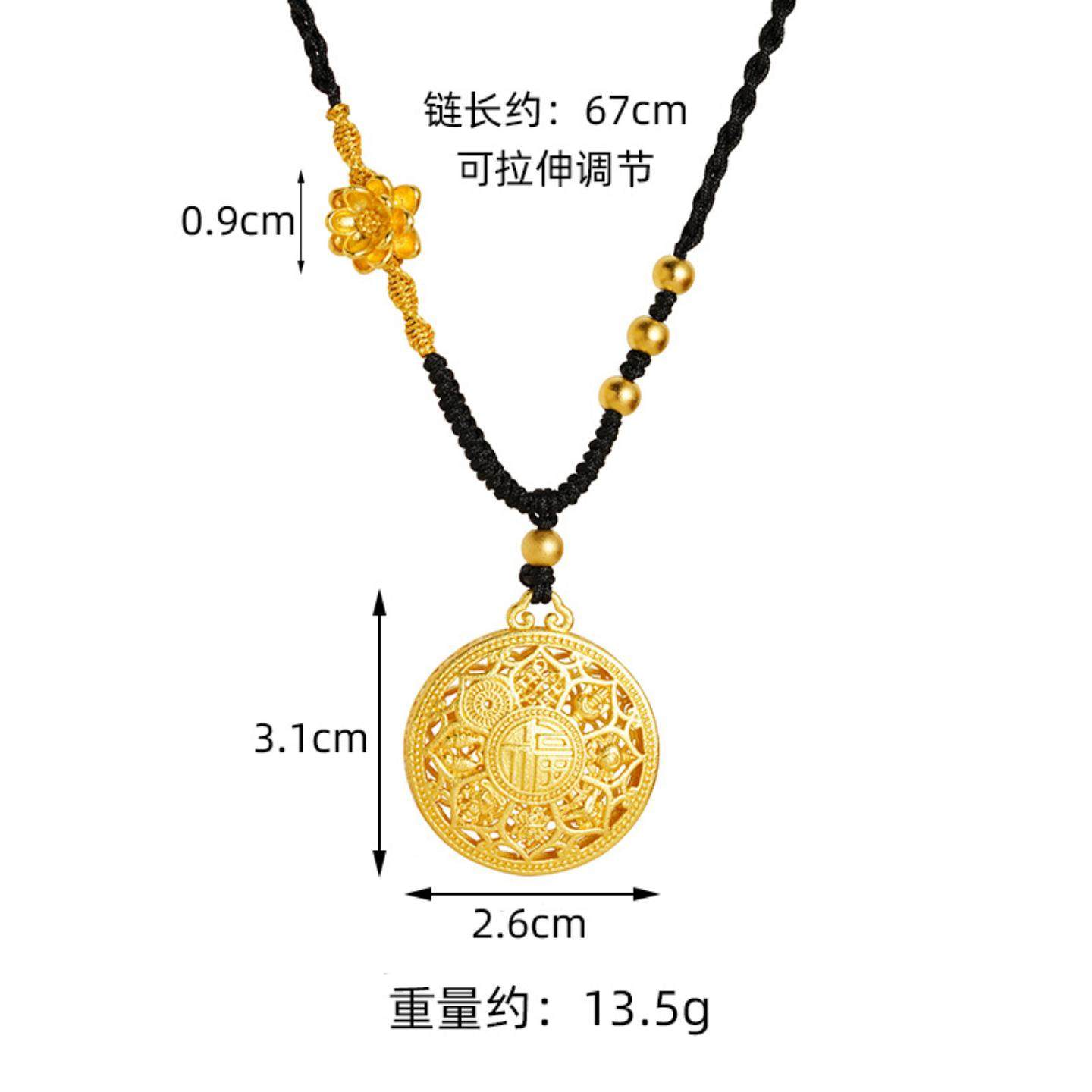 古法沙金传承八宝罗盘福字项链镂空中复古国潮铜合金饰品