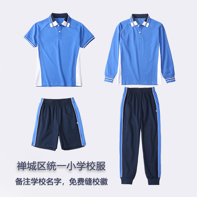 佛山禅城区小学生现货校服2025新款夏季POLO衫校服宝蓝色短袖短裤