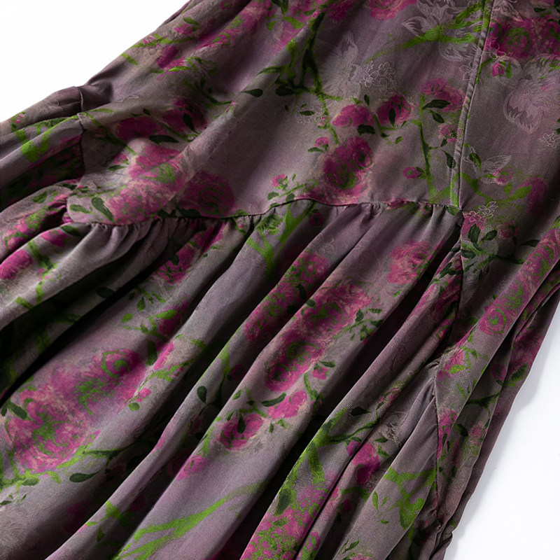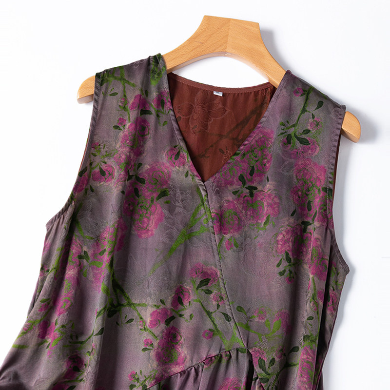 优雅灰紫!真丝花罗香云纱!设计感!桑蚕丝A字大摆背心裙连衣裙