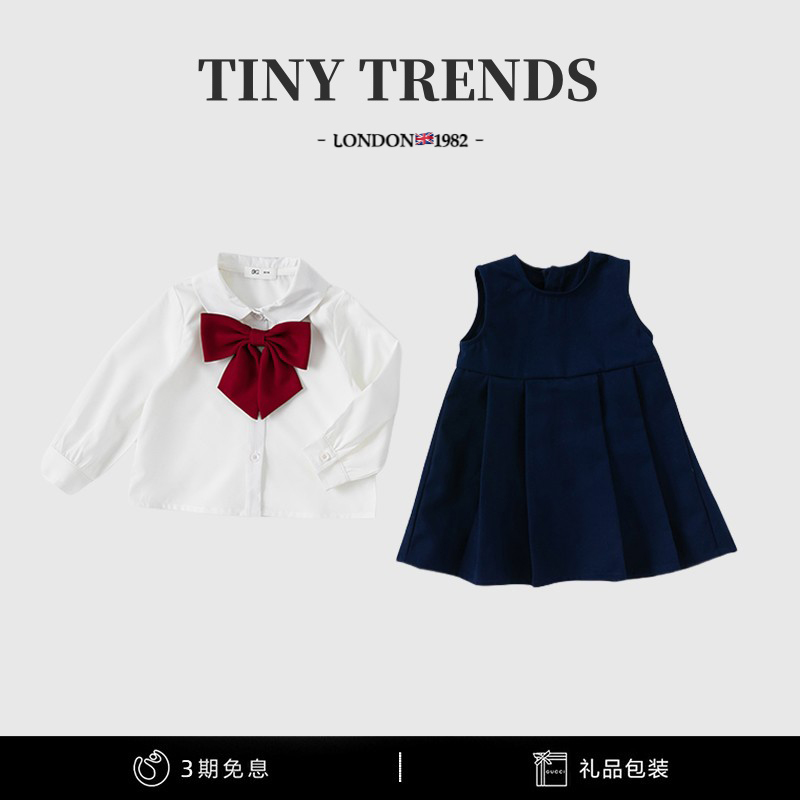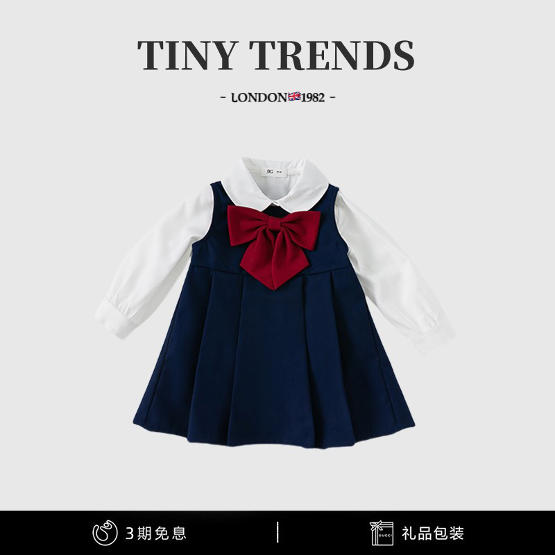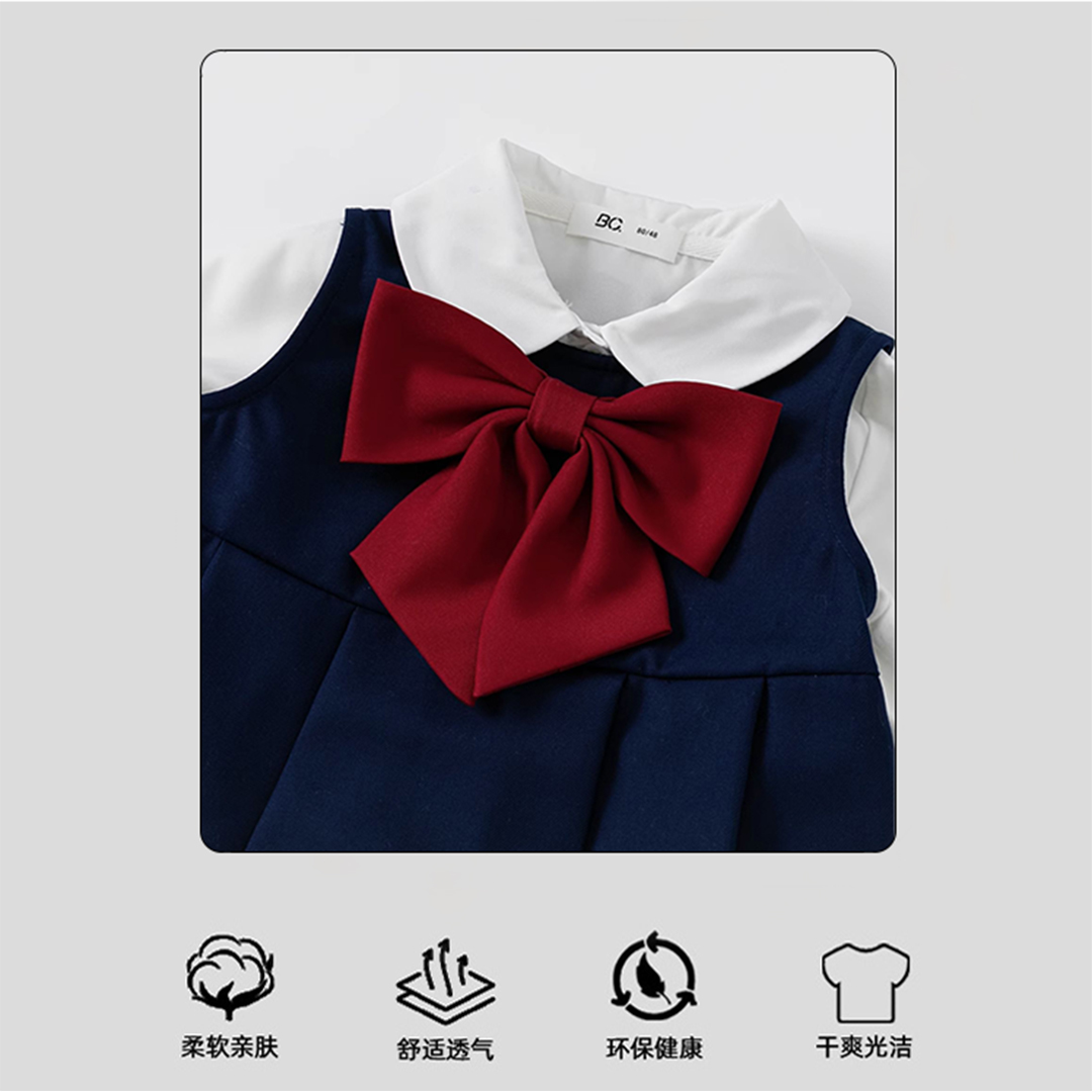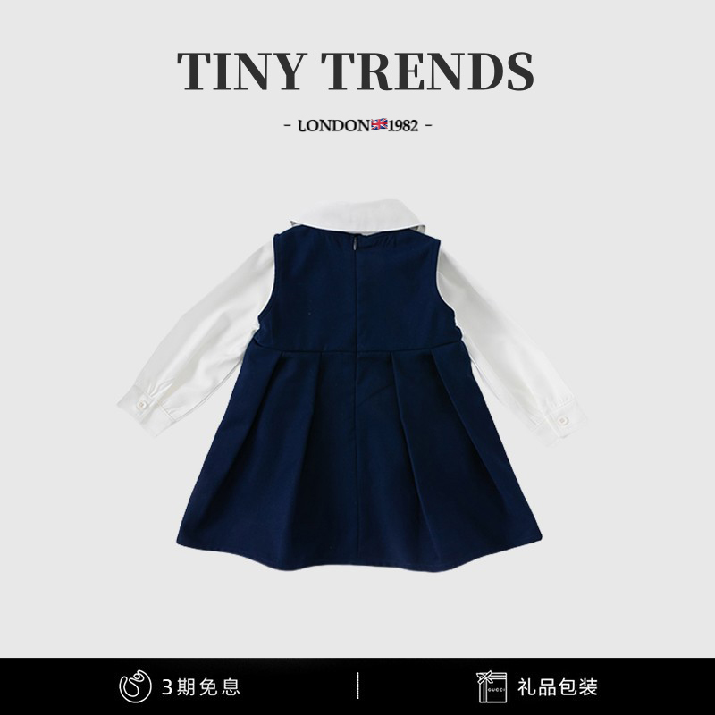 女童背带裙套装春秋装女宝宝学院风公主裙两件套儿童连衣裙小童潮