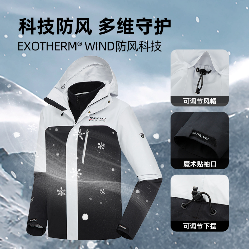 商场同款诺诗兰户外三合一冲锋衣秋冬男士防风登山外套NWJEH5607S
