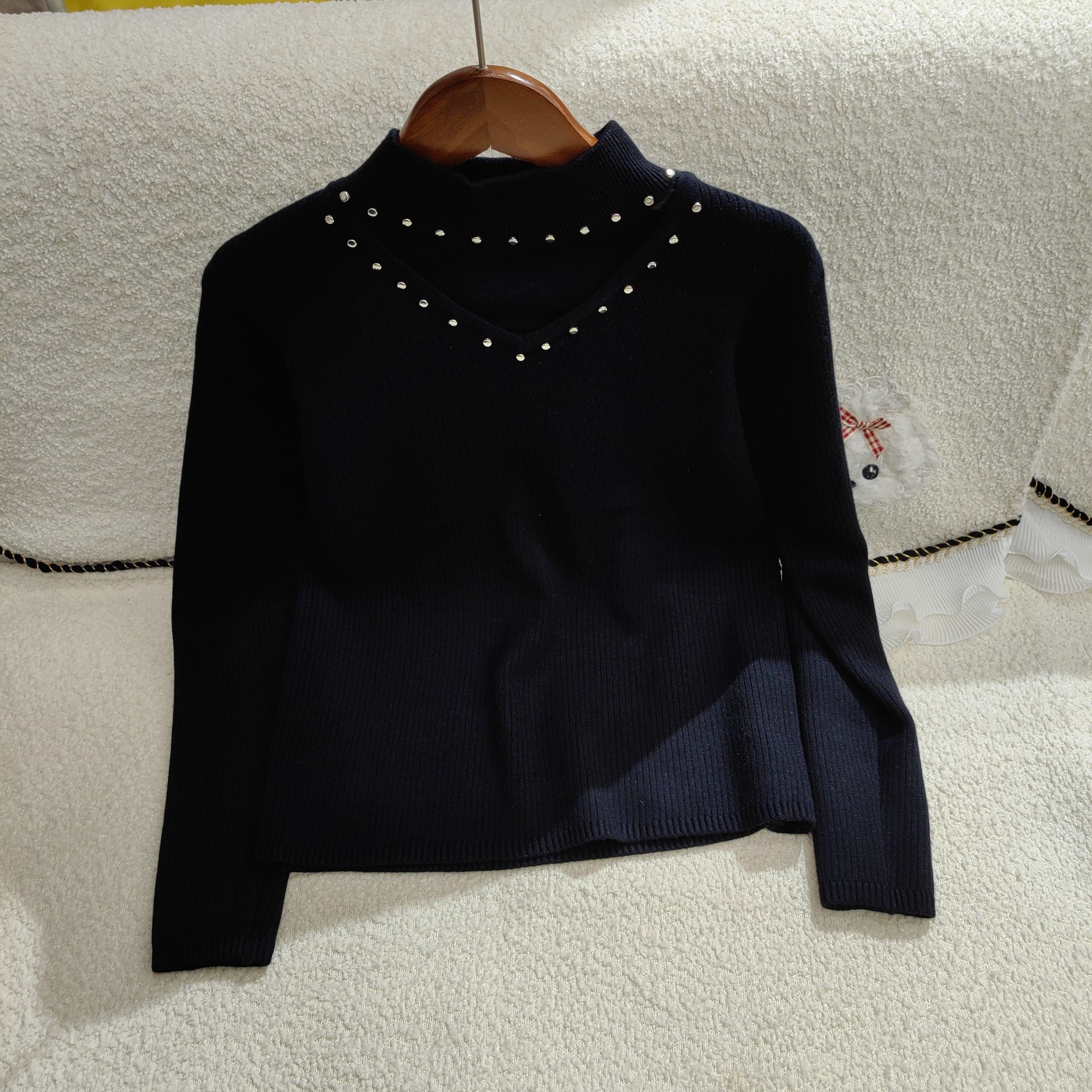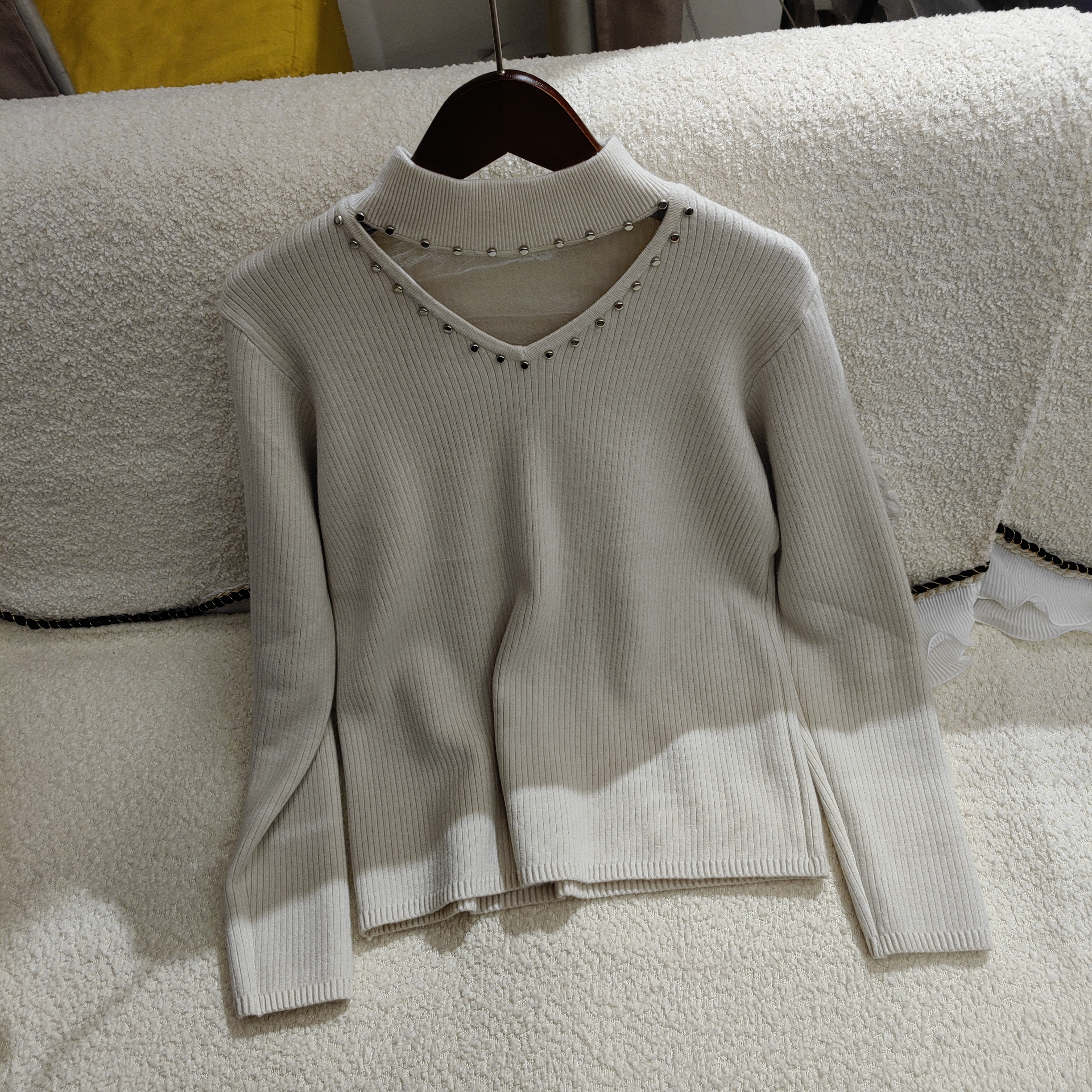 2025秋冬新款韩版钉珠镂空一体绒加厚内搭半高领针织打底衫毛衣女