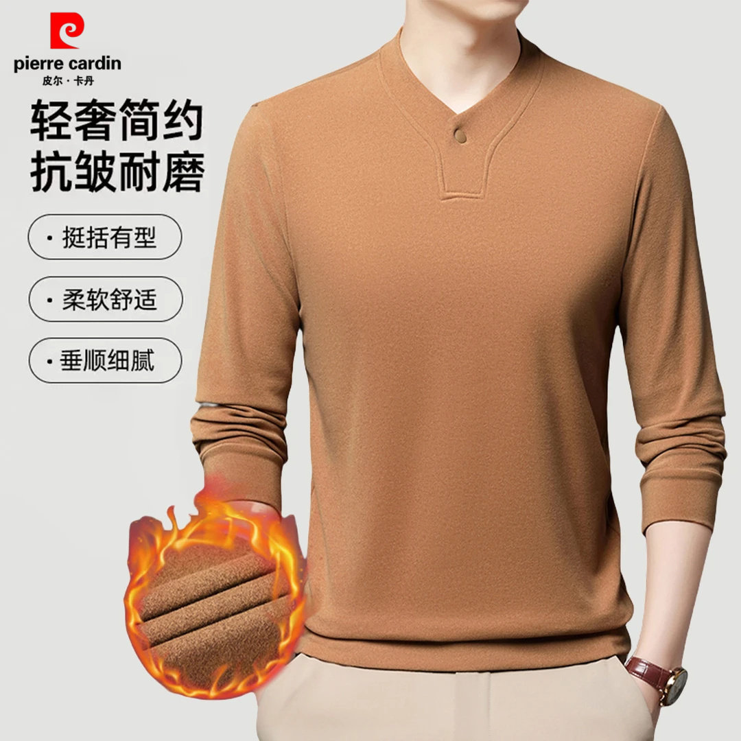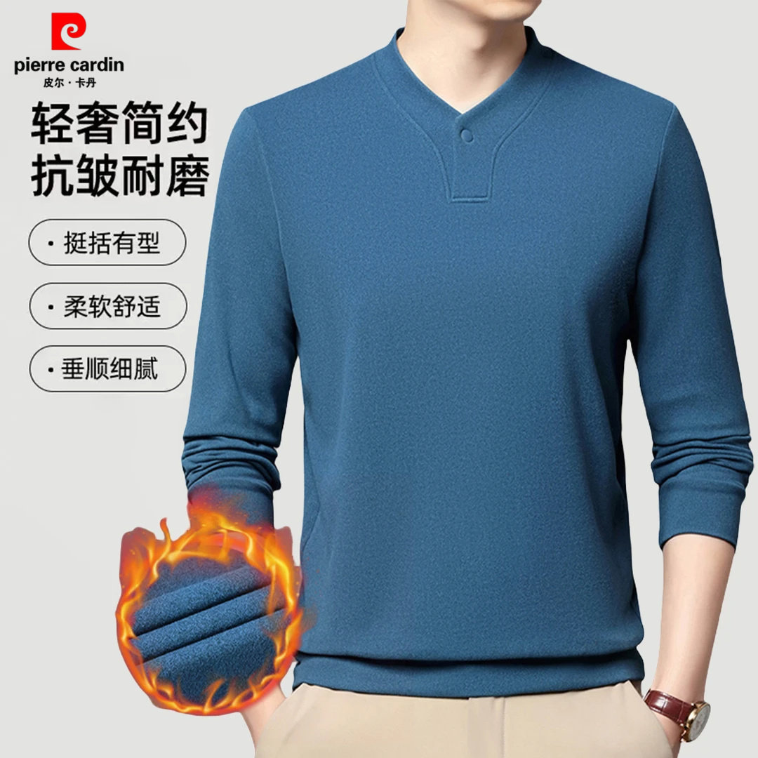 皮尔卡丹新中式立领男士冬季保暖双面绒卫衣打底衫德绒长袖T恤男