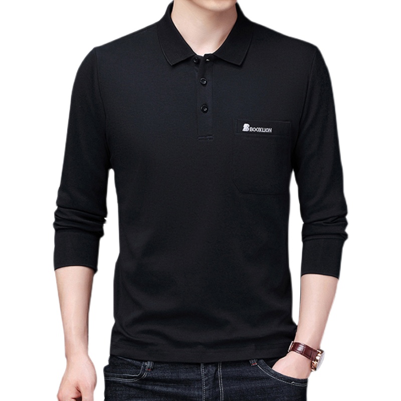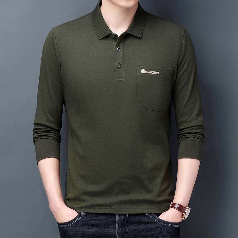 春秋男士纯棉长袖T恤宽松中年人上衣POLO衫中老年男装打底衫加绒