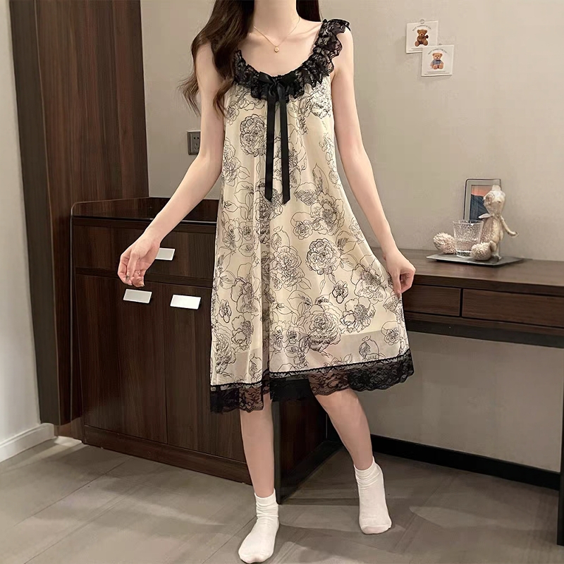 吊带睡裙女夏季睡衣网纱带胸垫2025新款可外穿薄款无袖夏天家居服