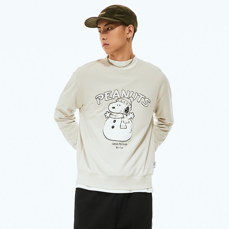 Fun潮牌套头卫衣男女秋冬新款史努比套头印花简约ins宽松圆领上衣