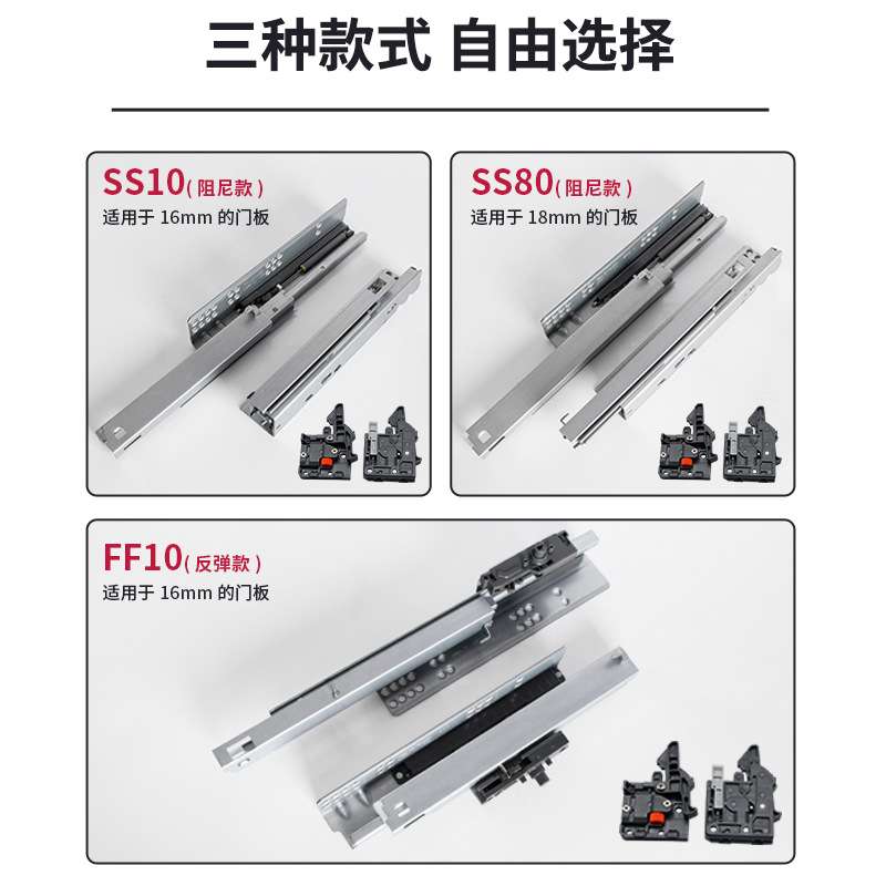 dtc东泰三节托底轨全拉阻尼缓冲滑轨ss10ss80轨道隐藏式抽屉导轨