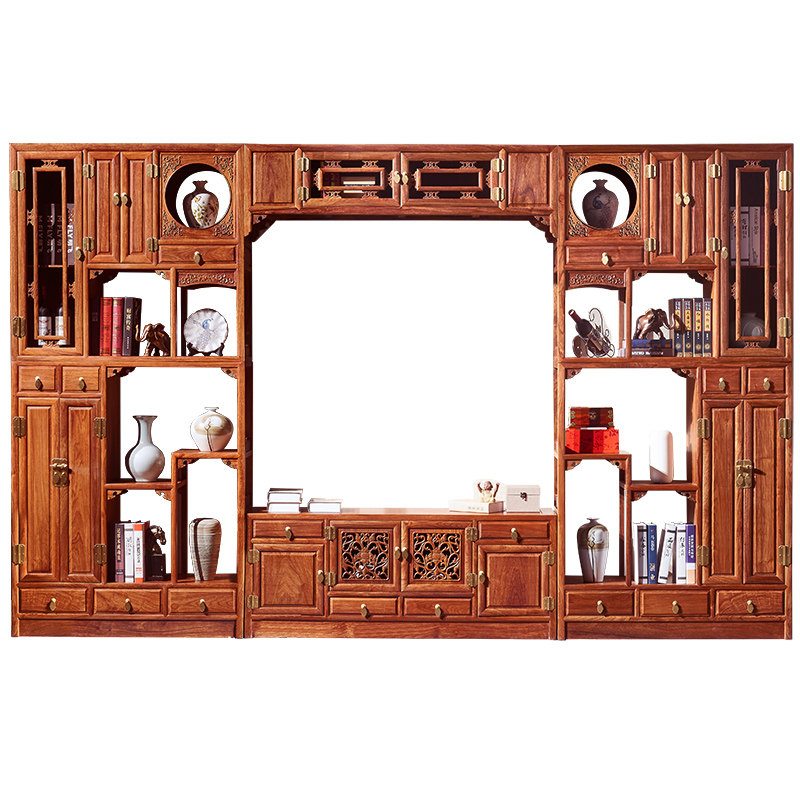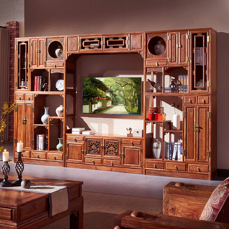 红木家具电视墙背景墙中式家具客厅电视柜墙柜刺猬紫檀电视背景墙