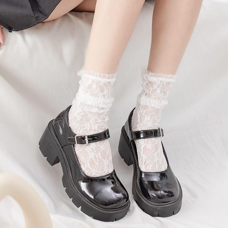 仙女袜子白色洛丽塔中筒袜蕾丝日系jk纯欲风夏季薄款花边小腿袜薄