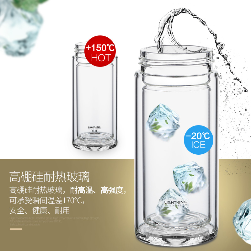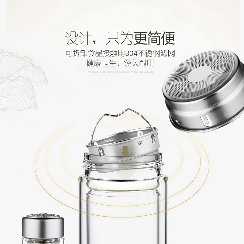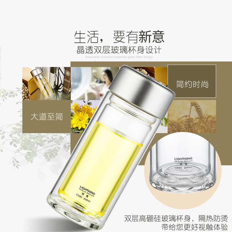 明尊CN'90玻璃随手杯双层保温便携小神龙玻璃茶杯带茶隔水杯茶壶