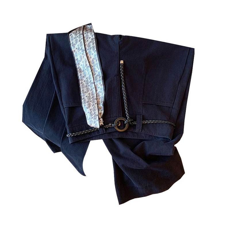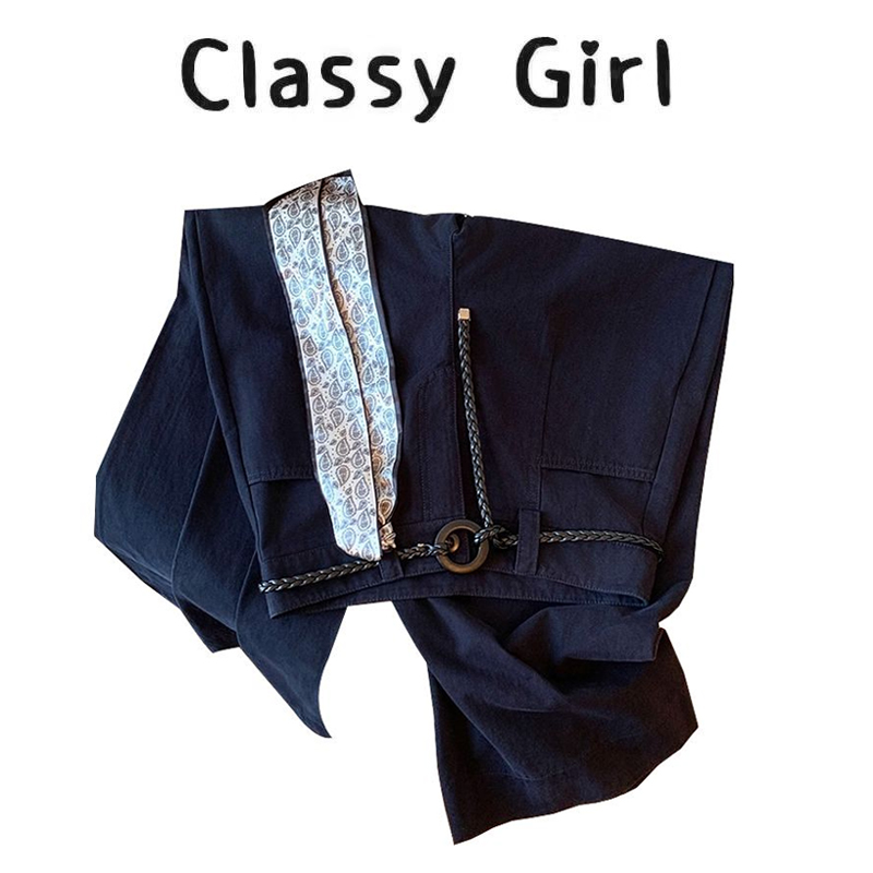 藏蓝色西装裤女早秋季新款高级感慵懒宽松休闲裤天丝直筒弯刀裤子