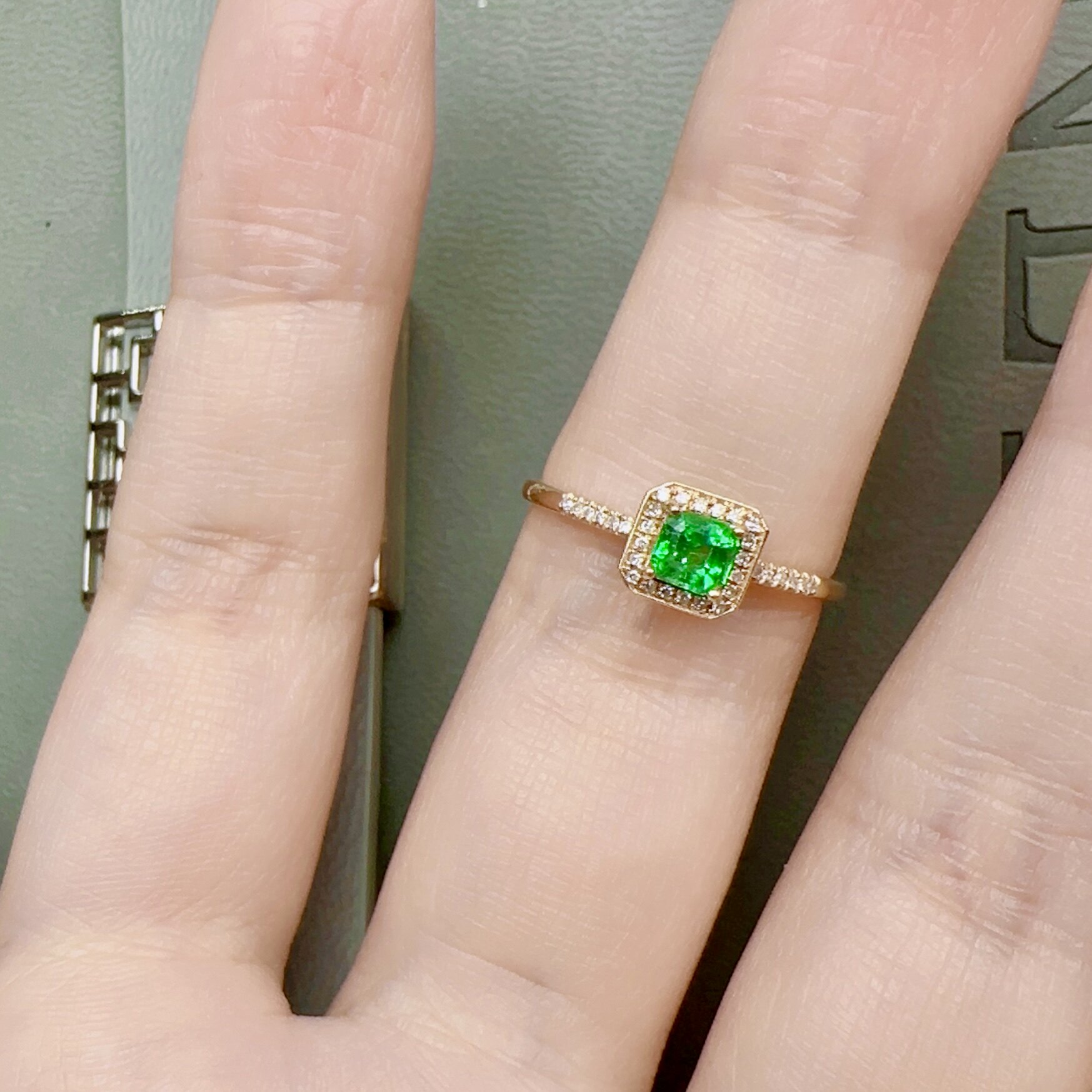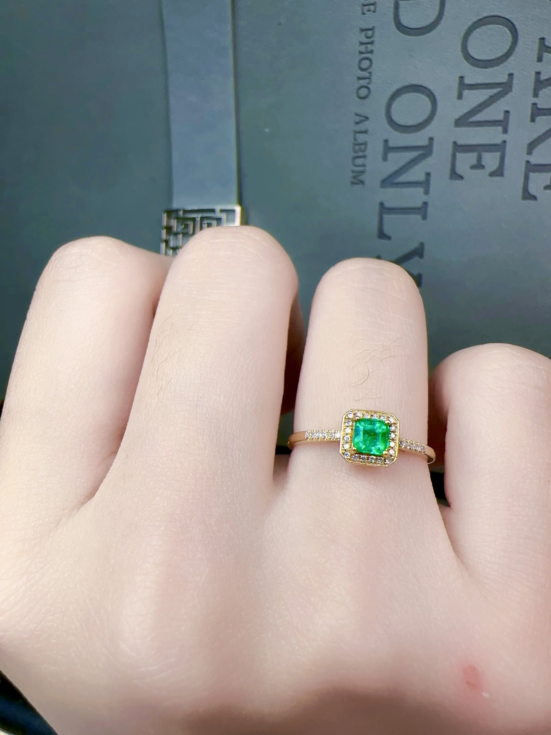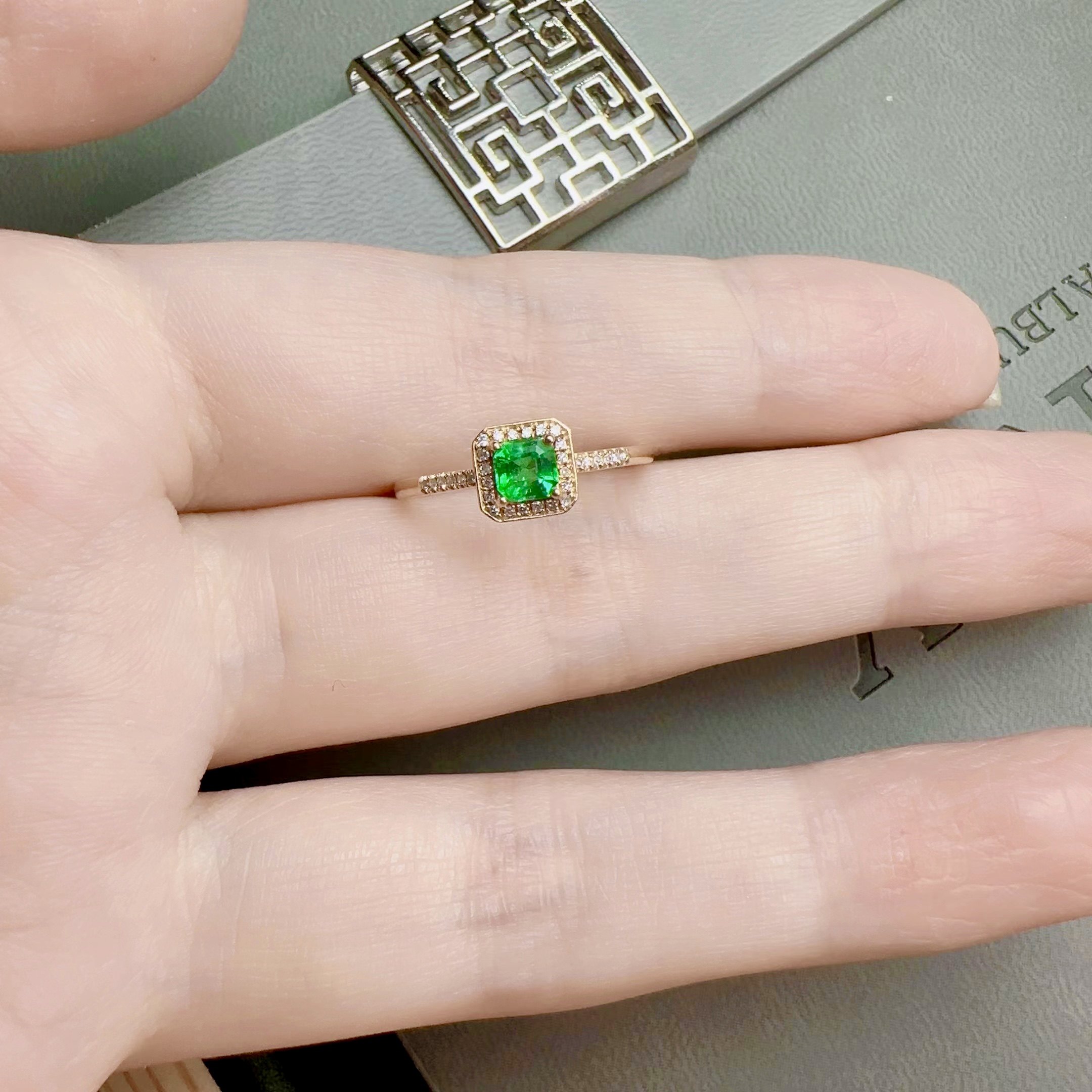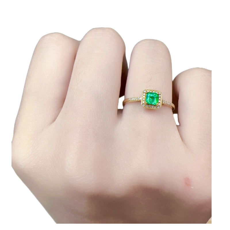 天然祖母绿戒指18k金配钻石精工镶嵌彩宝首饰