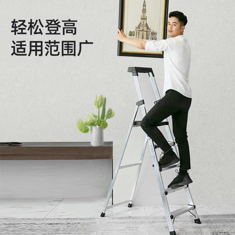 稳耐梯子家用五金平台折叠人字梯加厚铝合金登高梯子P275CN包邮