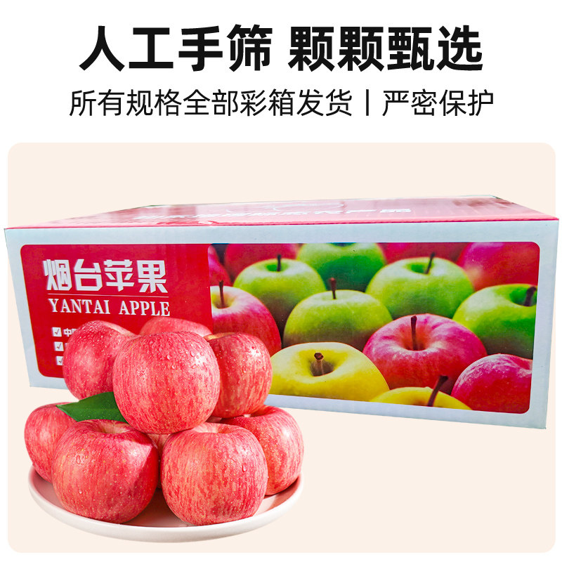 烟台红富士苹果新鲜水果山东当季整箱栖霞脆甜苹果礼彩箱包邮