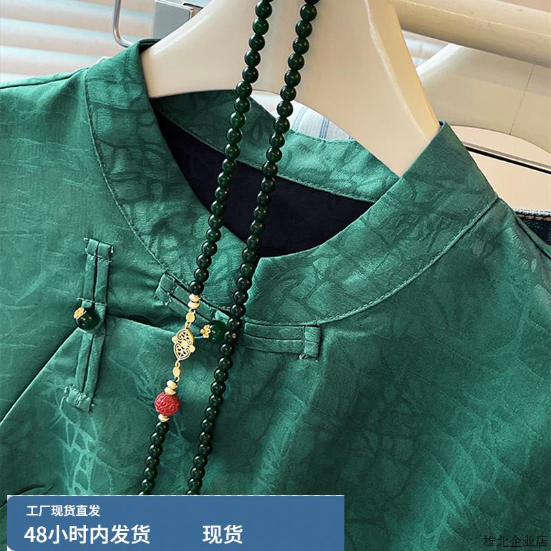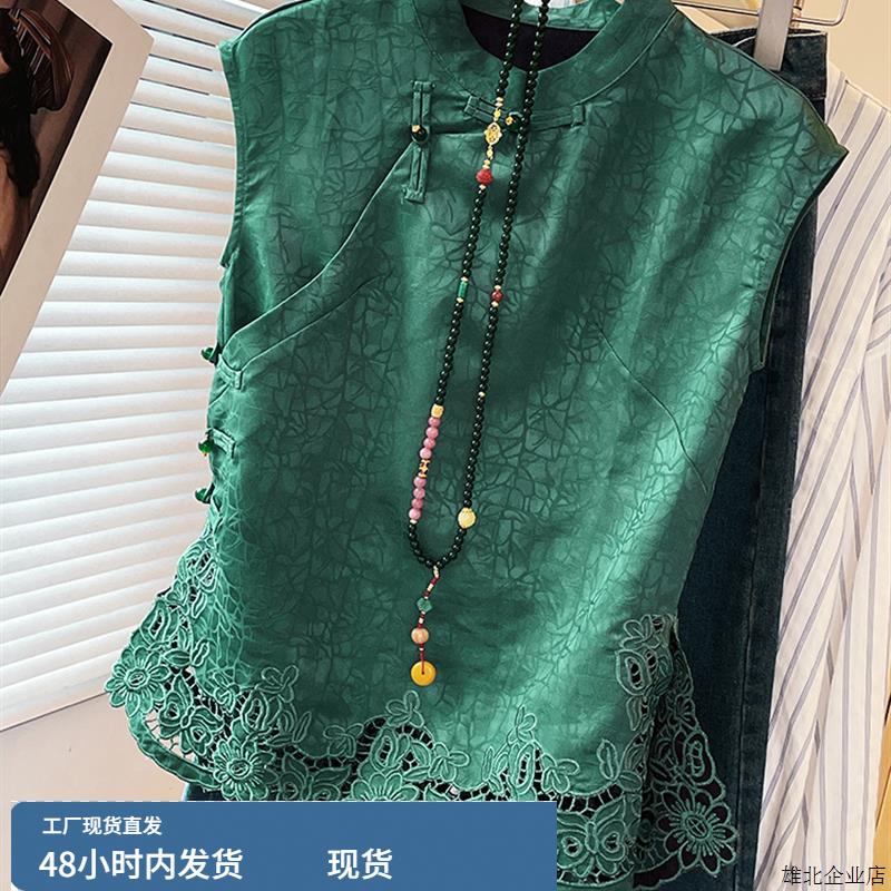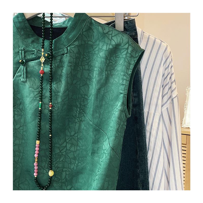 新中式国风气质绿色唐装盘扣小衫2025秋季高级百搭覆古无袖上衣女