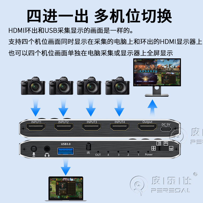 皮乐仕 4路视频采集卡 双机位4k摄像机单反手游直播电脑导播专用