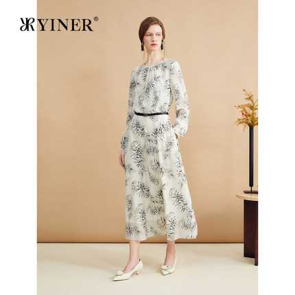 【真丝系列】YINER音儿秋季法式高级感艺术印花弹力桑蚕丝连衣裙
