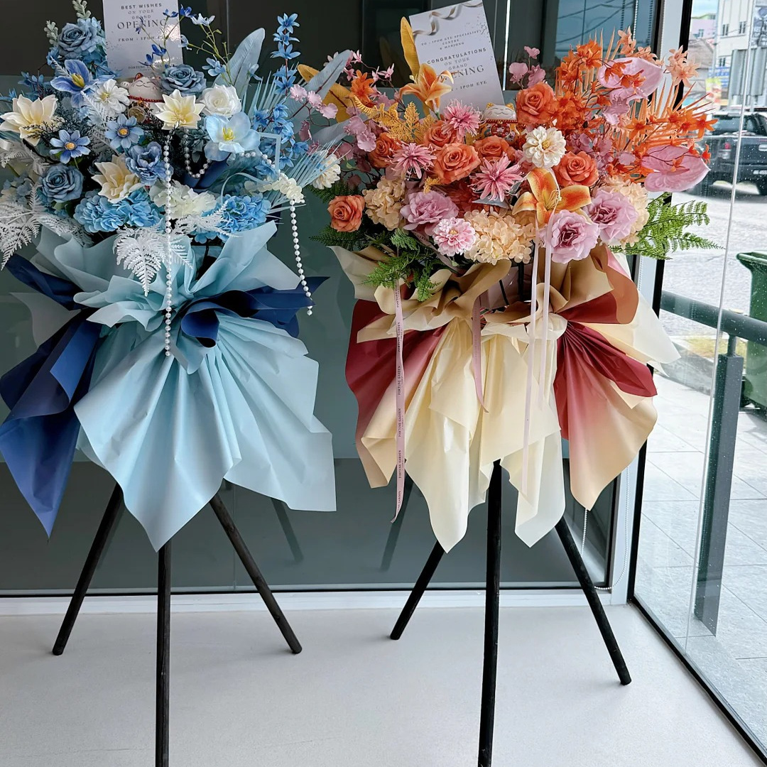 开业大吉花篮三脚架黑色三角花架开张实木三叉支架子花店资材布置