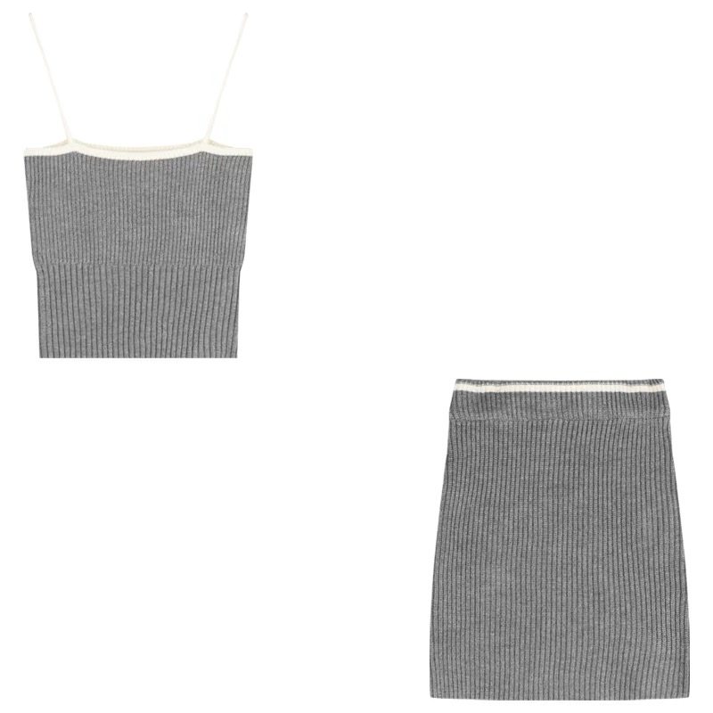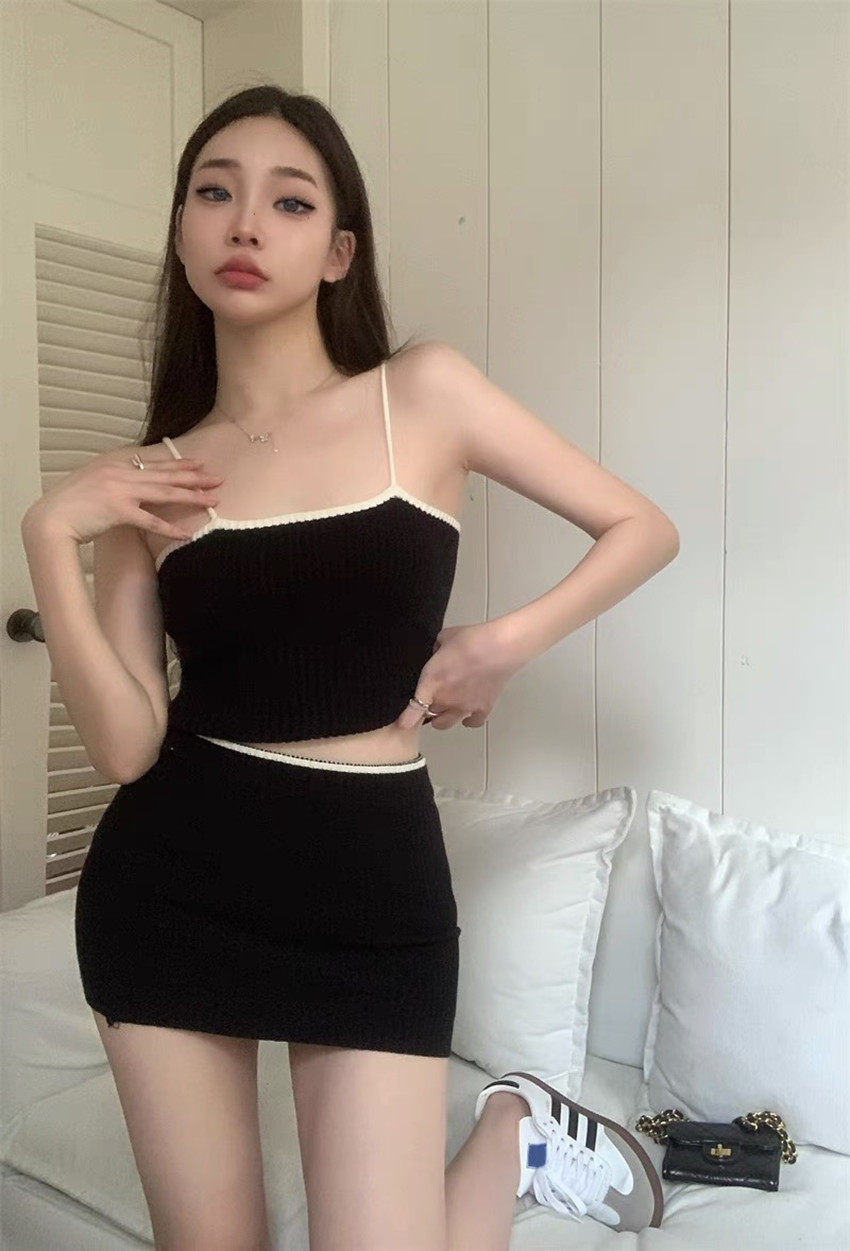 小众甜辣妹套装短款针织吊带背心女夏季性感短裙包臀半身裙两件套