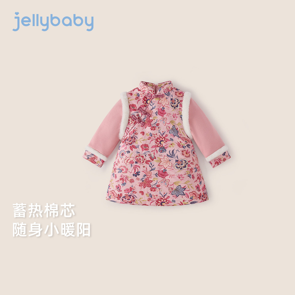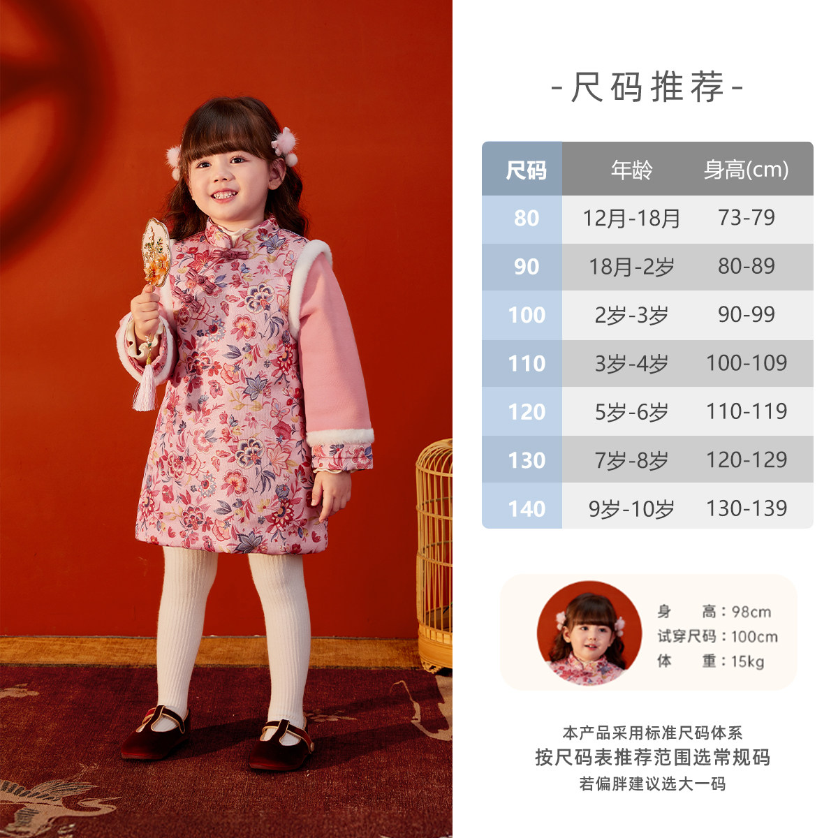 唐装女童加厚连衣裙儿童汉服冬装新年裙子国风红色童装宝宝旗袍冬