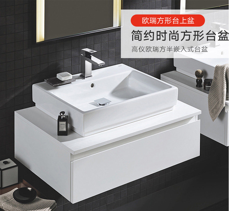 德国高仪 陶瓷面盆 高仪台上盆方形陶瓷台盆 有溢水口39234000