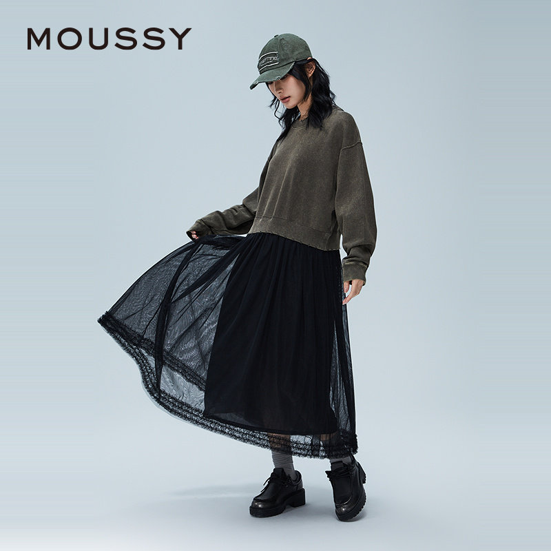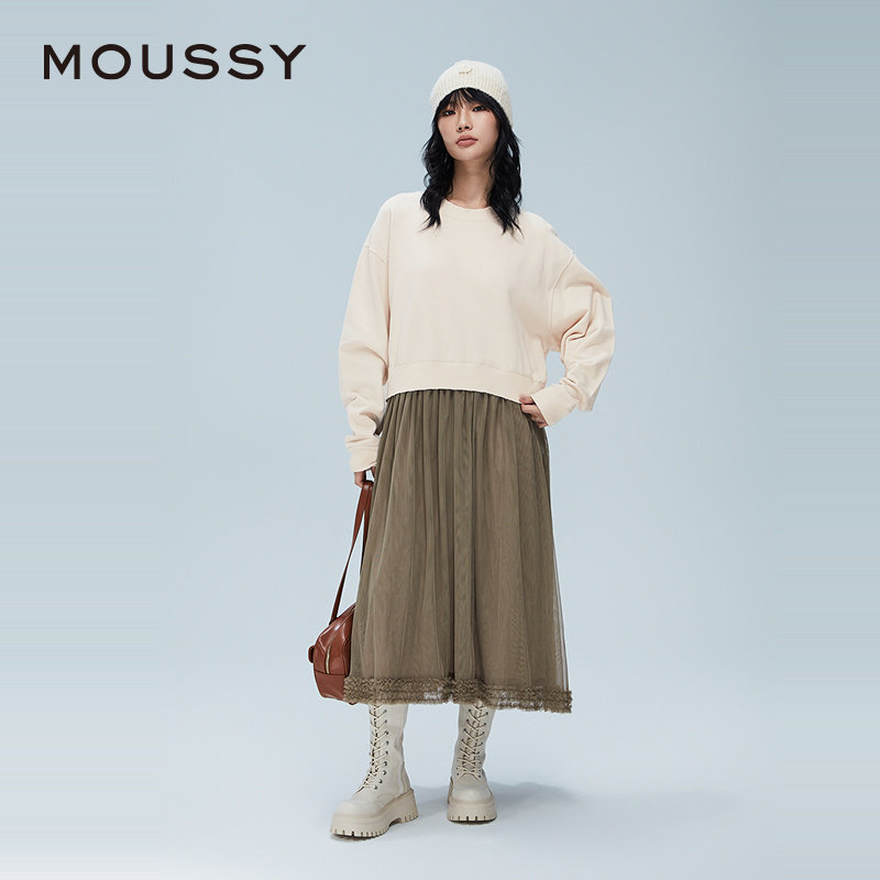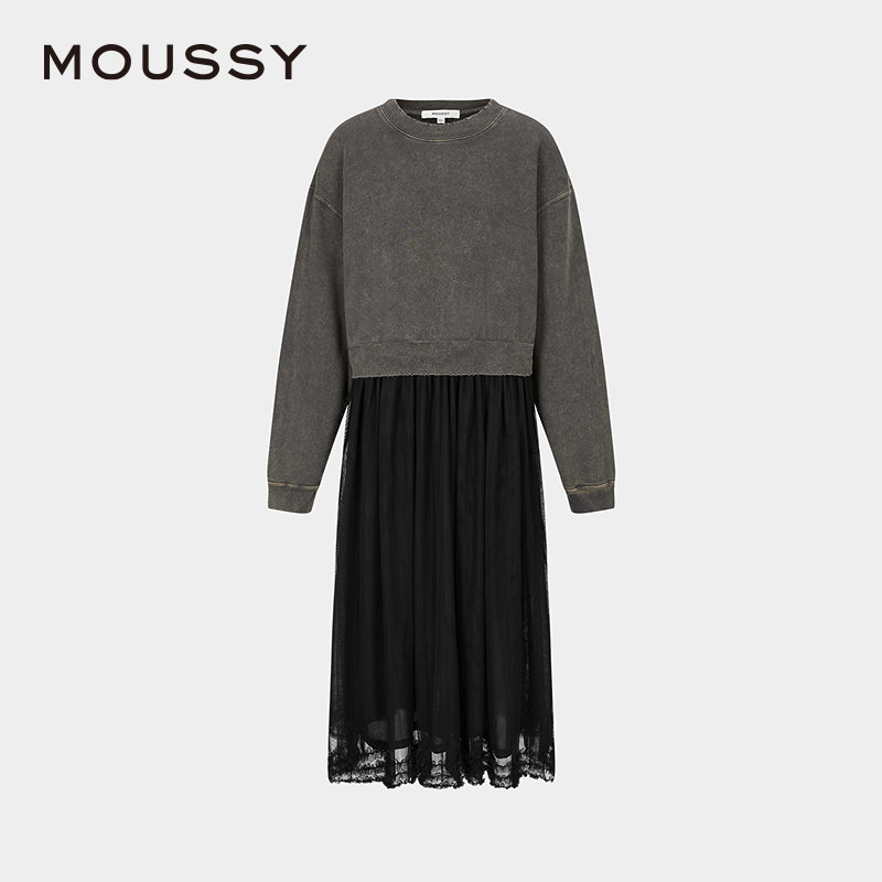 MOUSSY 冬季新品甜美日系风拼接卫衣裙连衣裙女028HA980-2181
