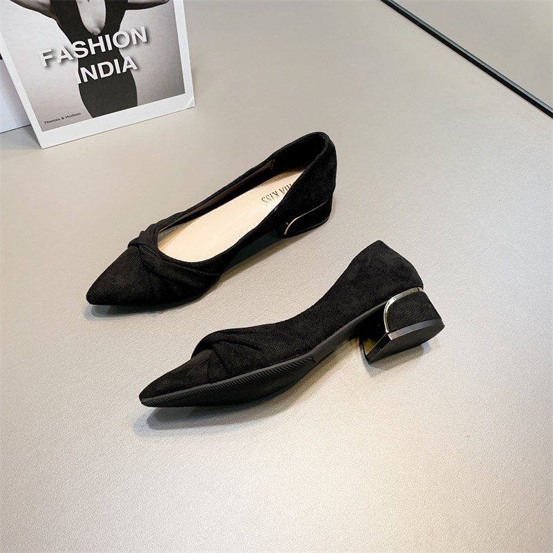 粗跟中跟豆豆鞋女2025春夏新款上班女鞋舒适低跟黑色职业尖头单鞋