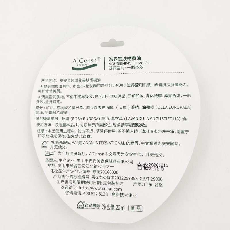 安安 滋养美肤橄榄油22ml*5瓶护发护肤精油乳液身体按摩油滋养
