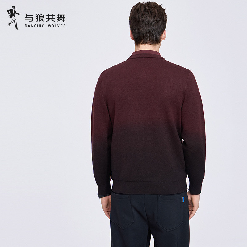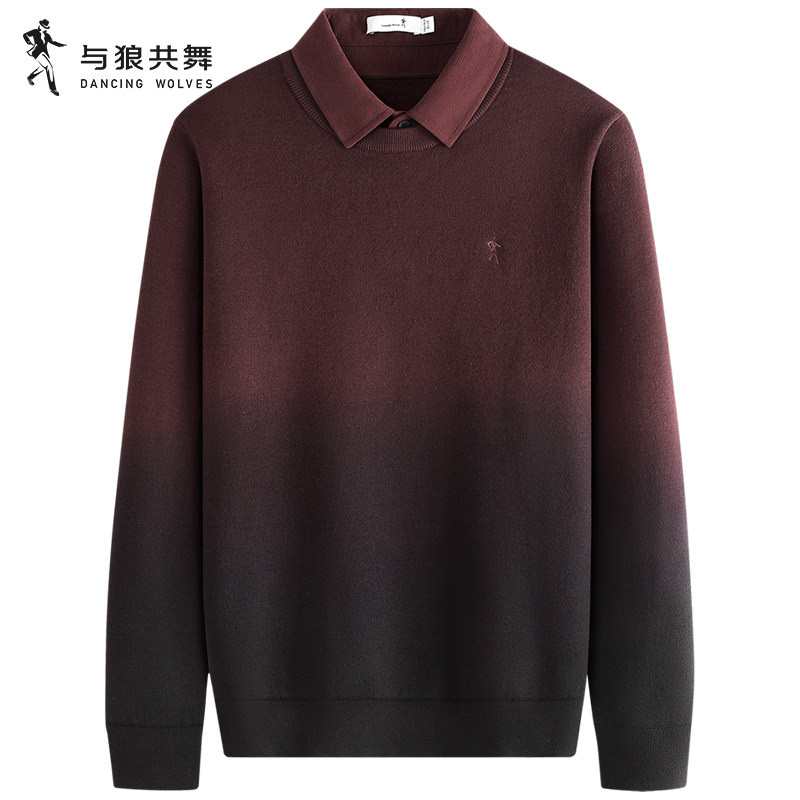 【加绒】与狼共舞假两件羊毛衫男士2025秋冬新款渐变保暖针织毛衣
