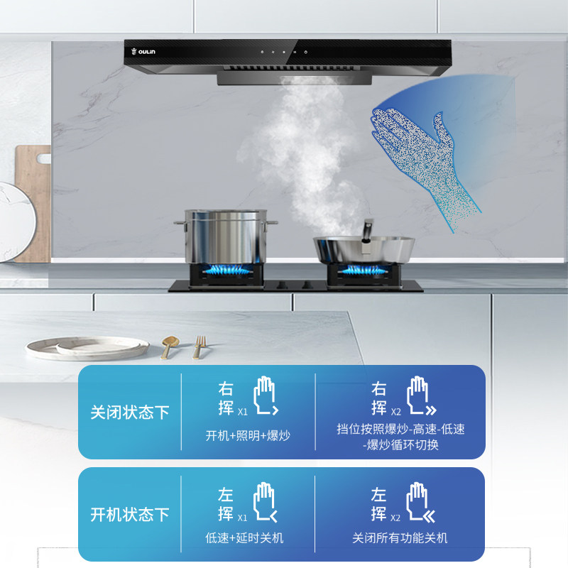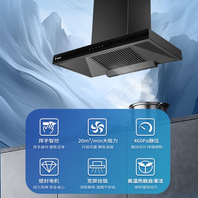 欧琳20m³家用厨房大吸力油烟机T型后置油杯免拆高温自清洁AG10