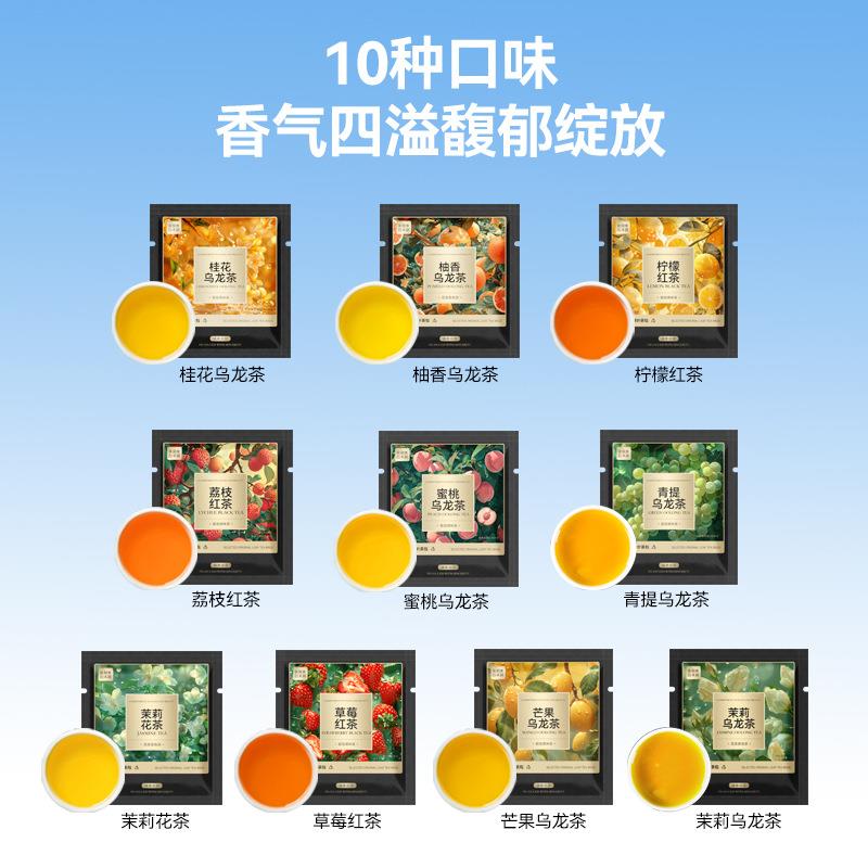 10种口味冷泡茶茉莉花茶叶原叶红茶乌龙茶水果茶无糖饮料袋泡茶包
