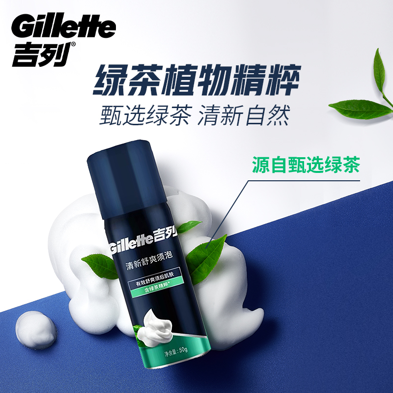 吉列剃须泡沫清新舒爽须泡手动刮胡刀剃须膏男士剃须软化胡须