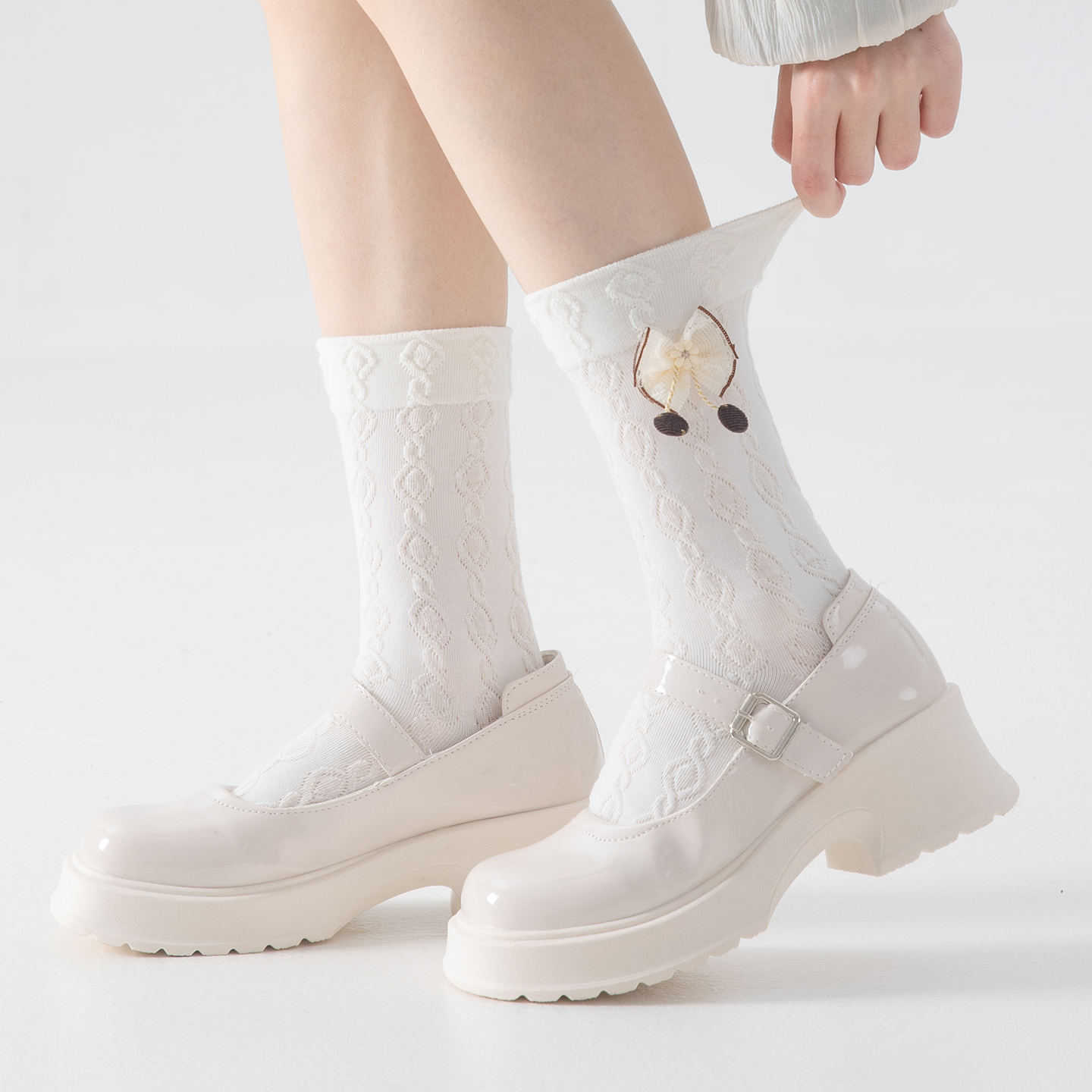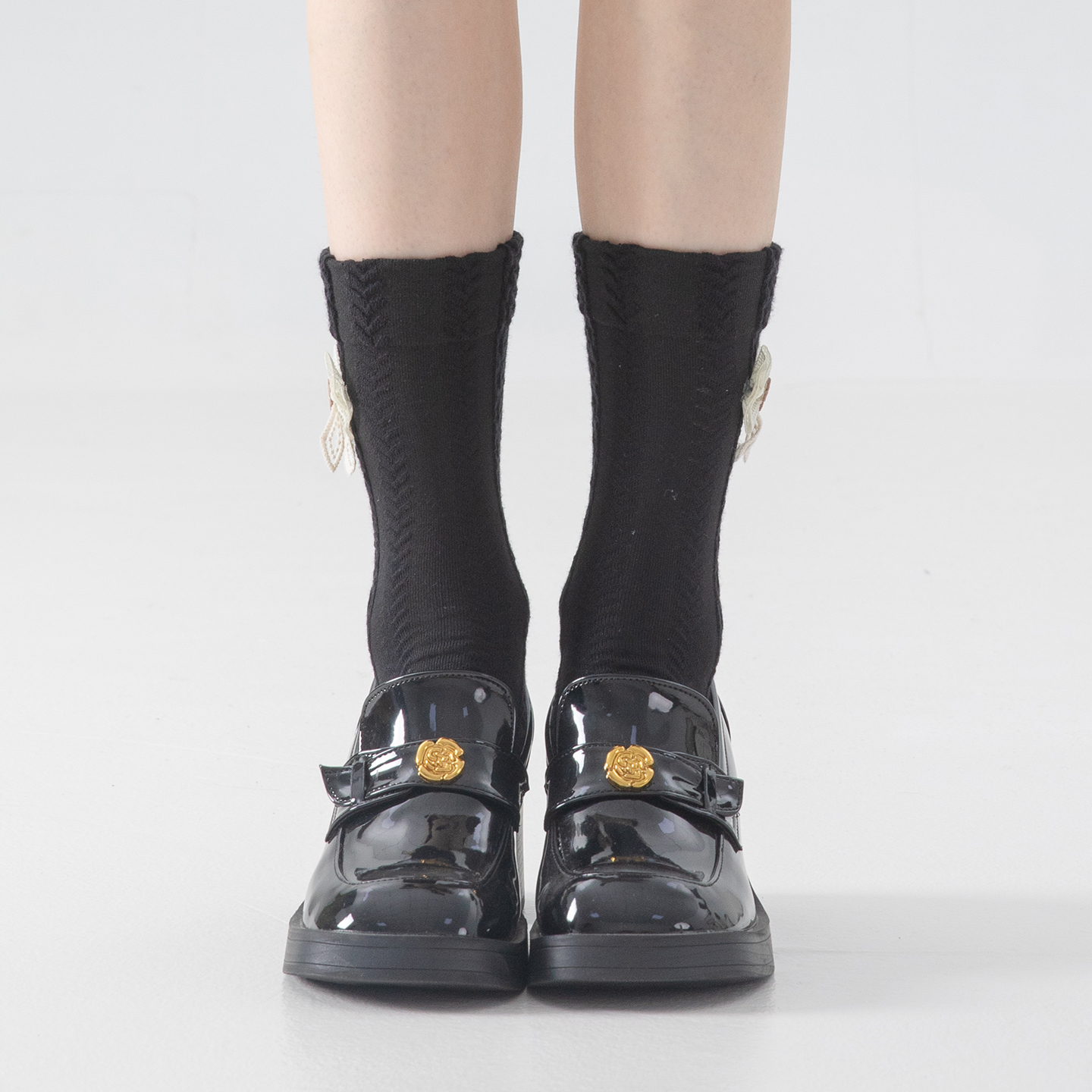 jk洛丽塔春秋中筒袜学院风ins潮袜女士立体浮雕甜美爱心装饰袜子