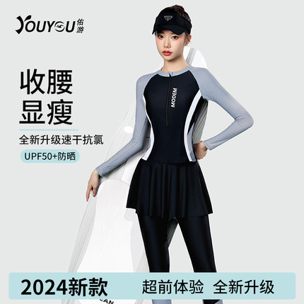 游泳衣女分体三件套2025新款防晒长袖长裤潜水保守女士泡温泉泳装