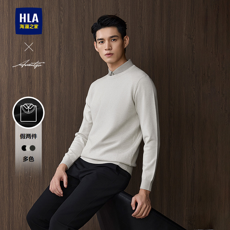 HLA/海澜之家轻商务时尚条纹双领针织衫25秋新款假两件黑色毛衣男