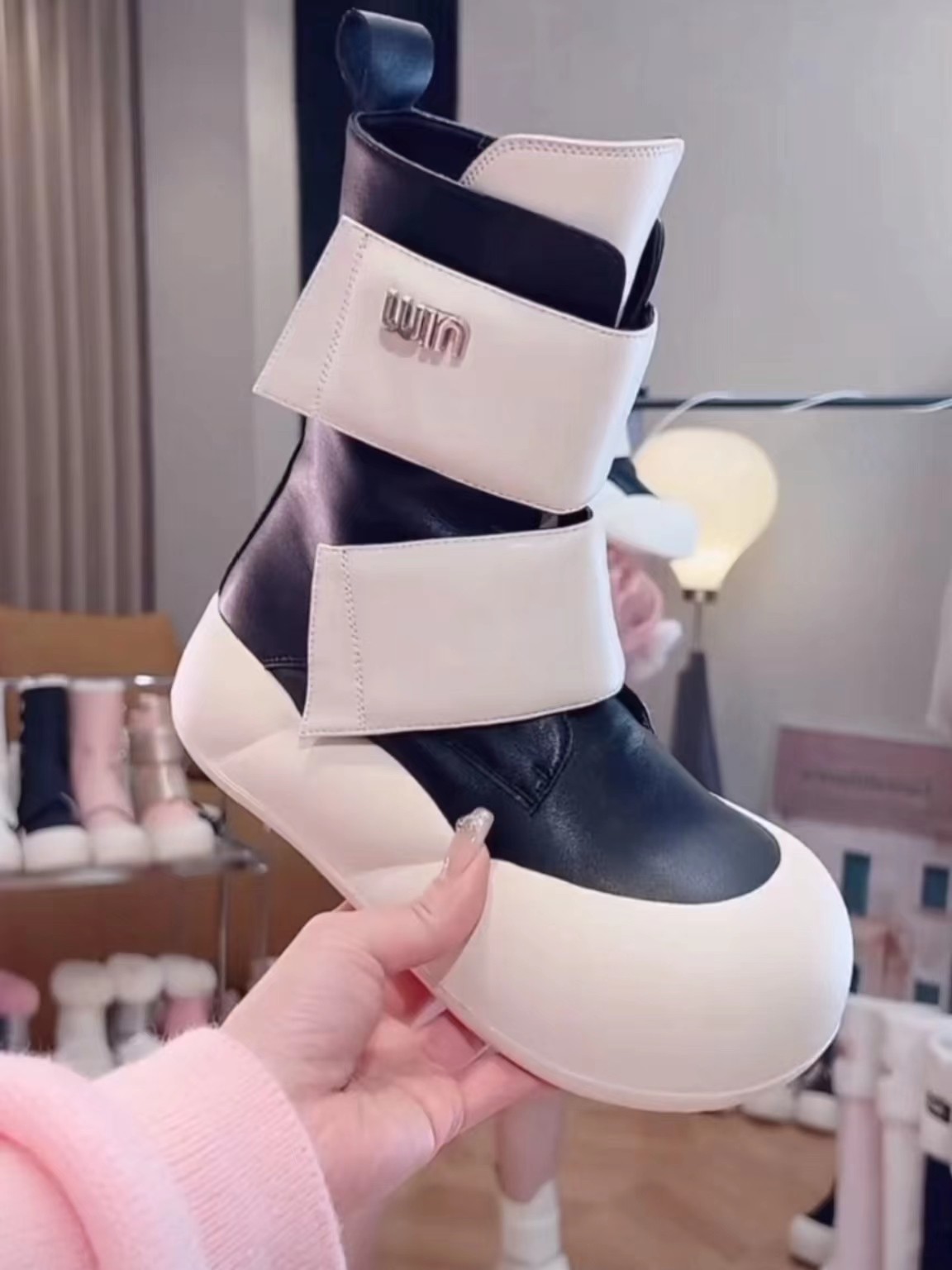 真皮加绒马丁靴女保暖短靴2025年冬季新款厚底时尚雪地靴防寒棉鞋