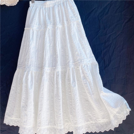 2026春夏季自制精致做工纯白色提花棉质半身中长裙女绣花边a字裙