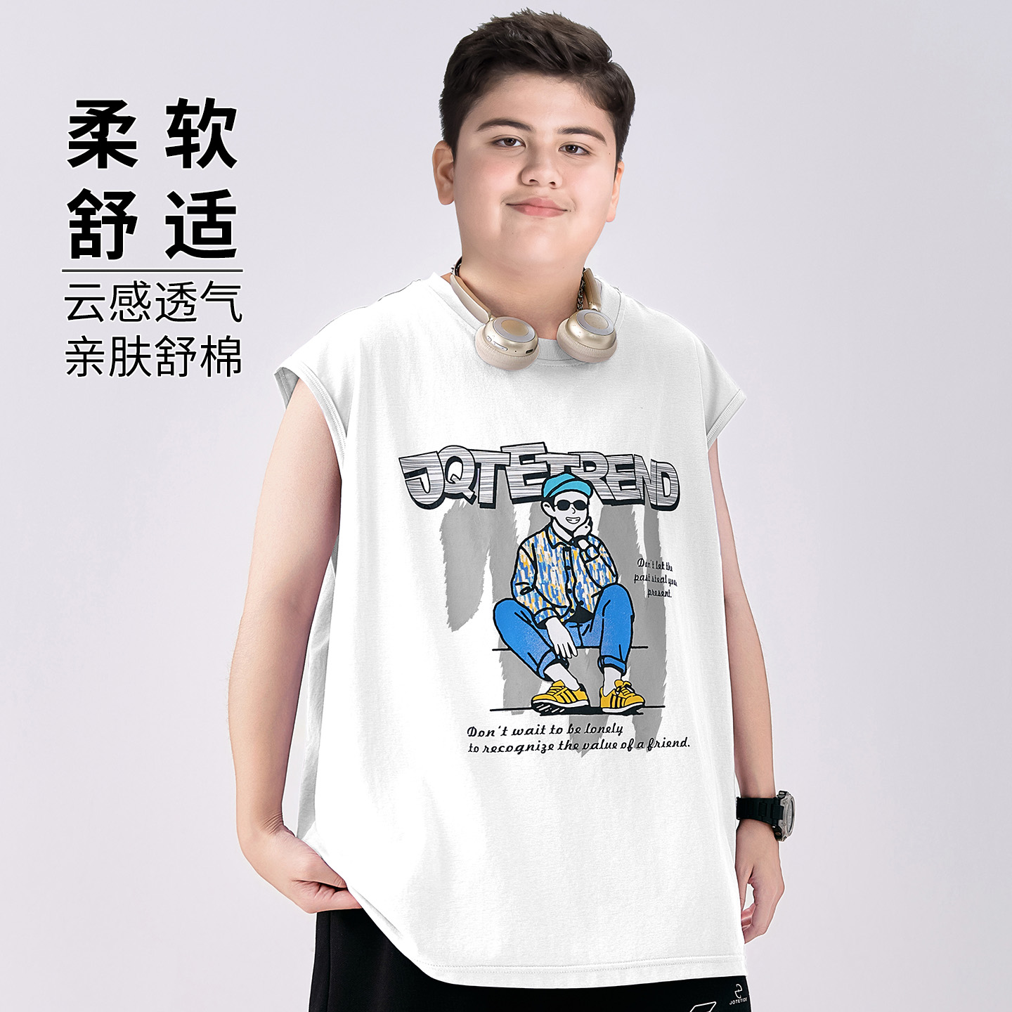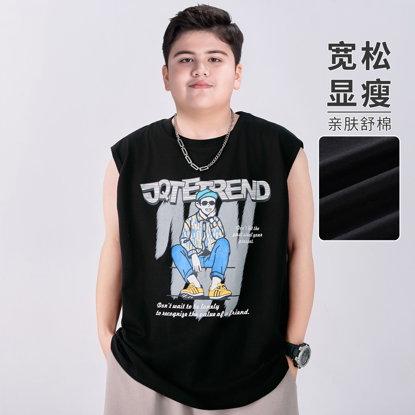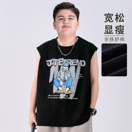 胖童装男童背心加肥加大夏装2025新款初中学生无袖t恤中大童夏季T