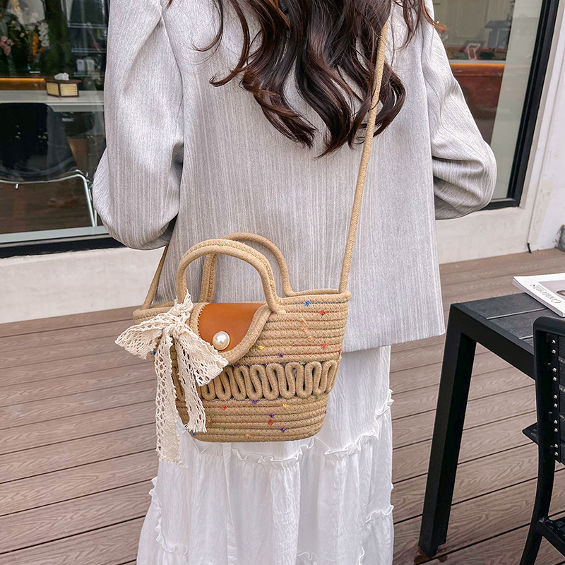 编织小众设计师包包海边度假风甜美可爱田园菜篮子斜挎包女水桶包