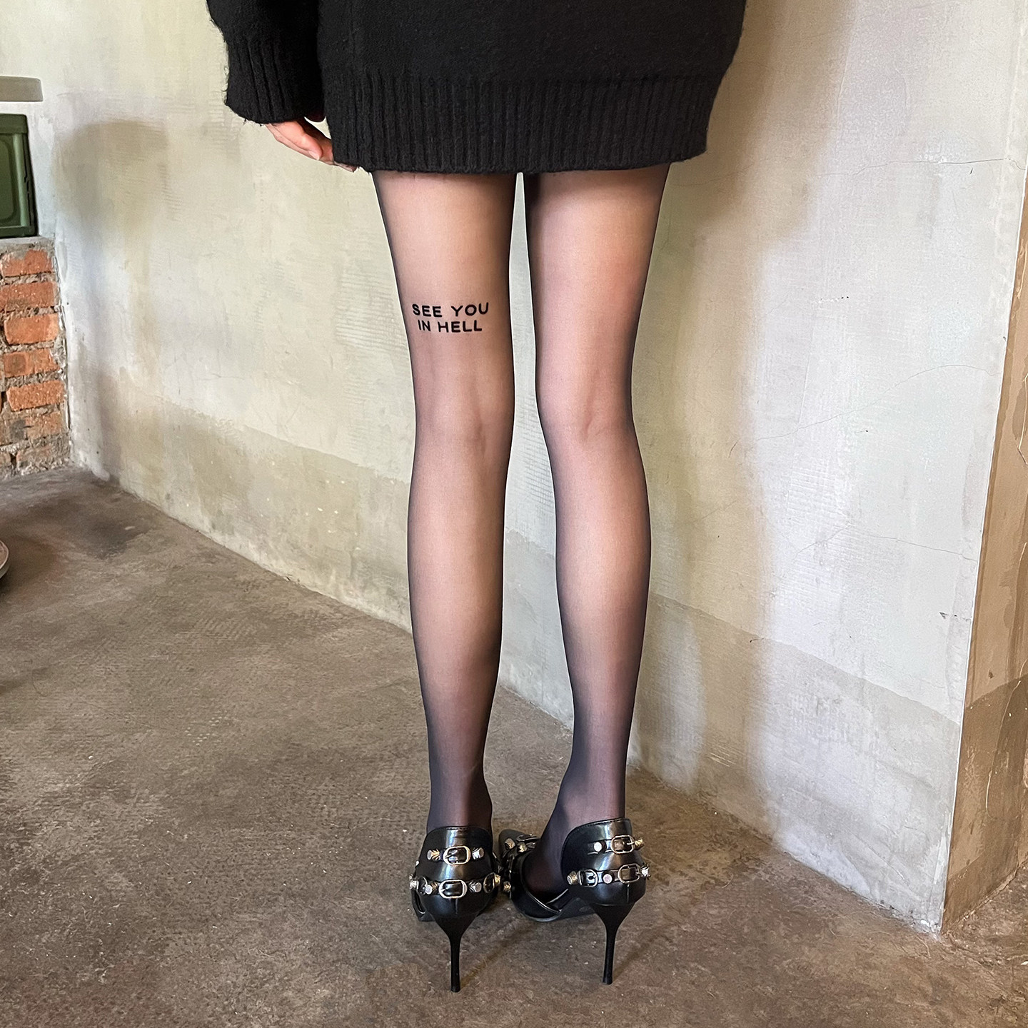 欧美风性感字母植绒丝袜女薄款连裤袜子辣妹黑丝打底袜显瘦美腿袜