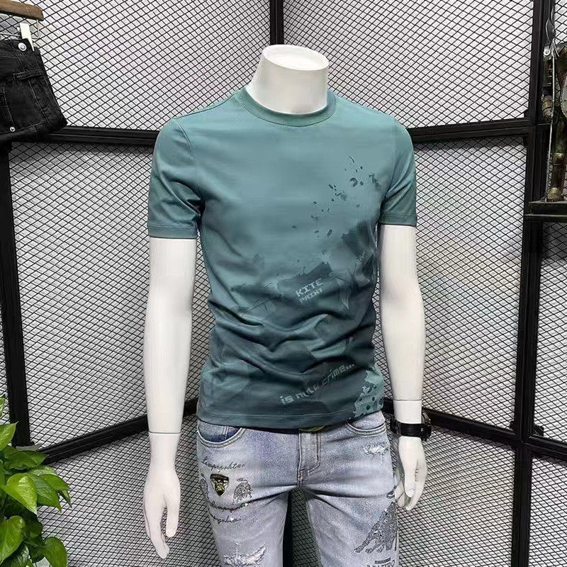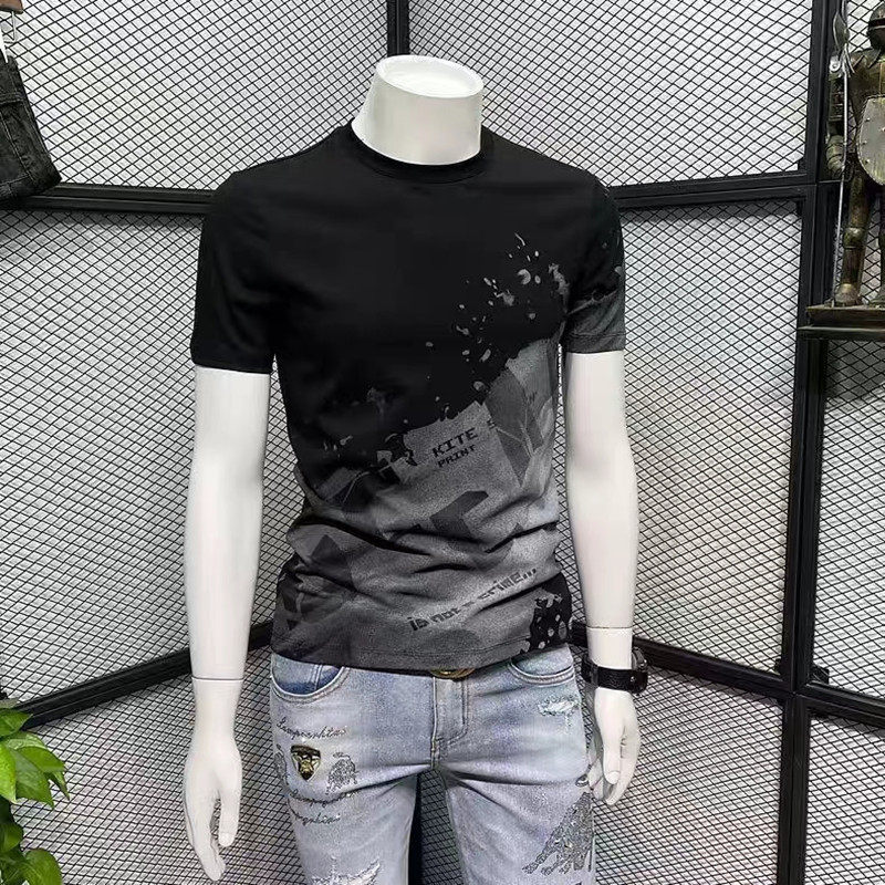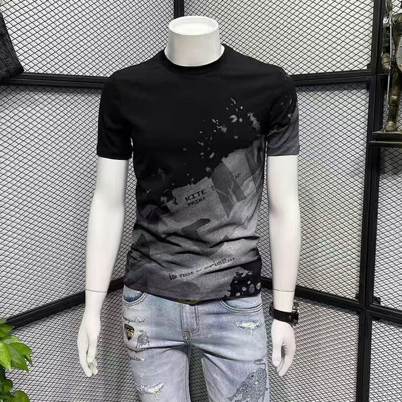 纯棉个性印花短袖男潮牌T恤夏季新款修身圆领半袖高端潮流体恤衫