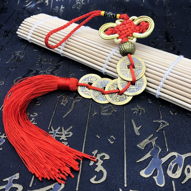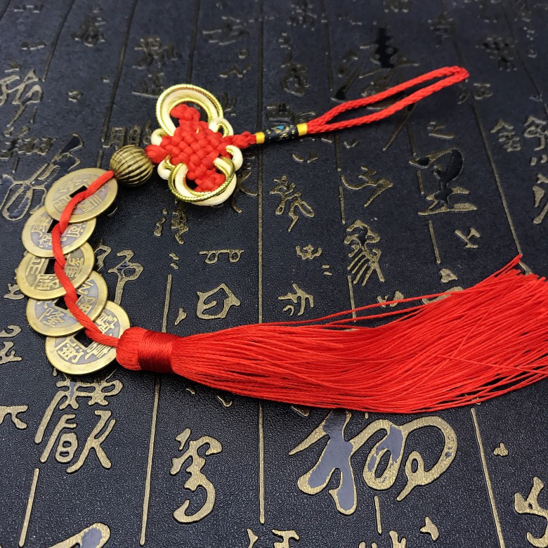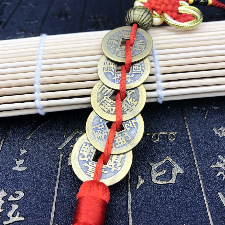 卧室门对门化解五帝钱挂件吊坠镇宅招财转运真品铜钱中国结车挂饰