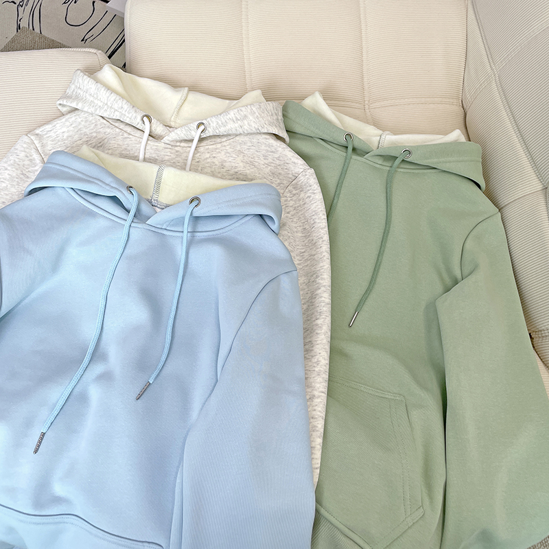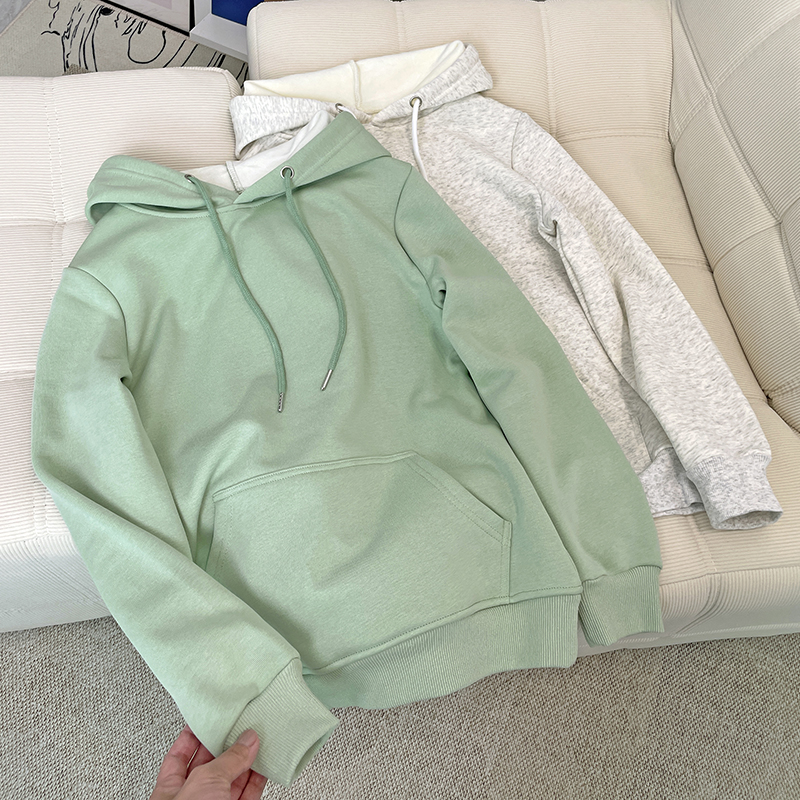 加绒宽松简约纯色通勤卫衣