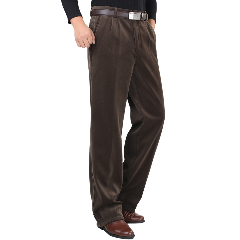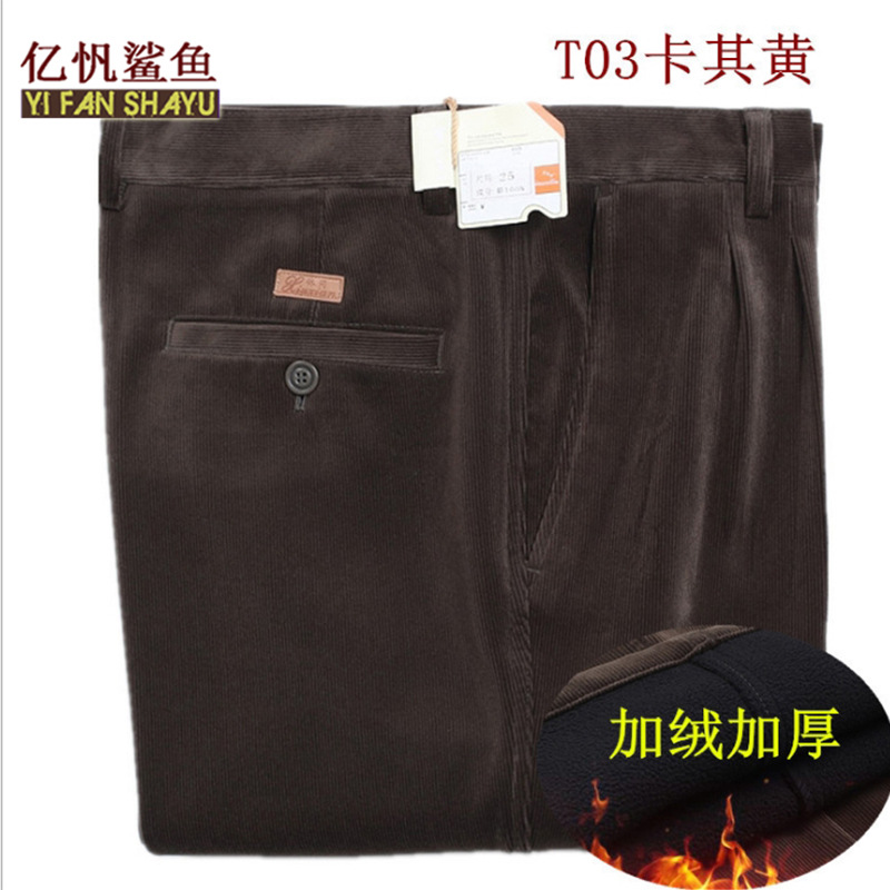 冬季新款加绒加厚弹力细条绒裤男式休闲裤灯芯绒中年中老年爸爸裤