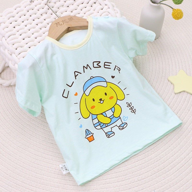 夏季婴儿纯棉短袖男宝上衣女宝夏装T恤儿童卡通套头肩扣衣外穿薄a