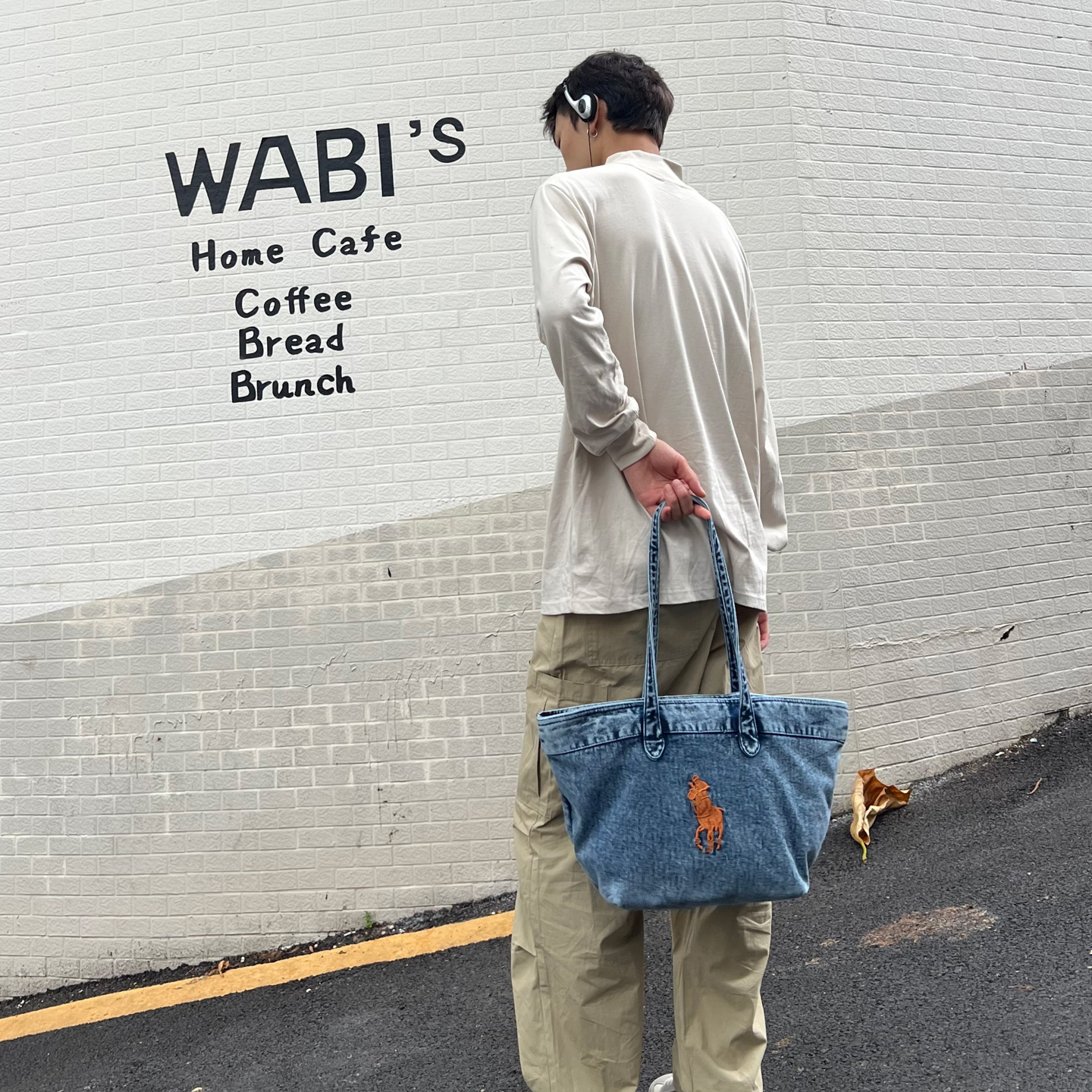 YUEN设计款ins水洗牛仔帆布休闲单肩斜挎包男女街头慵懒风大容量