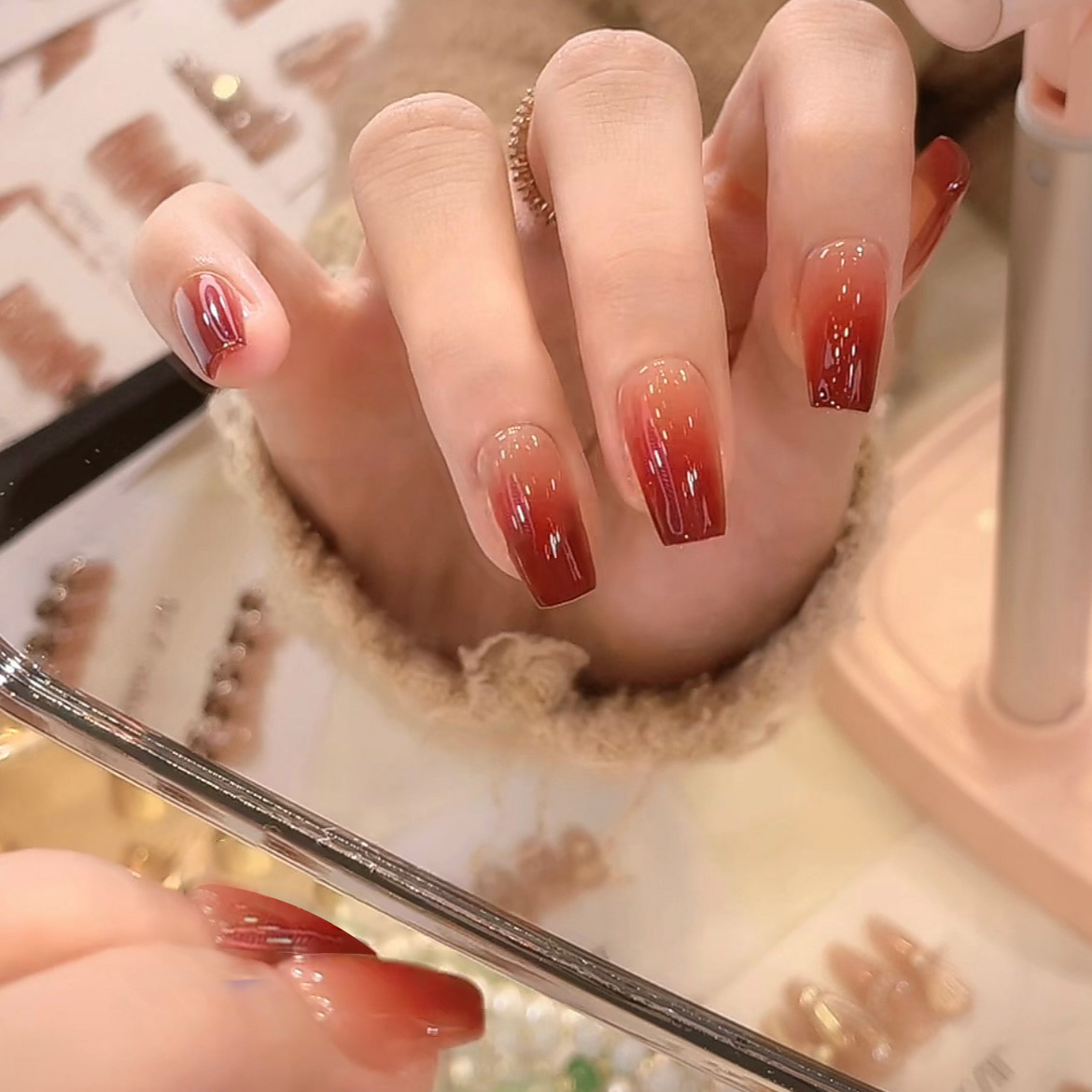 手工穿戴甲高级感浆果红茶爆款法式新娘甲贵气可拆卸持久美甲贴片