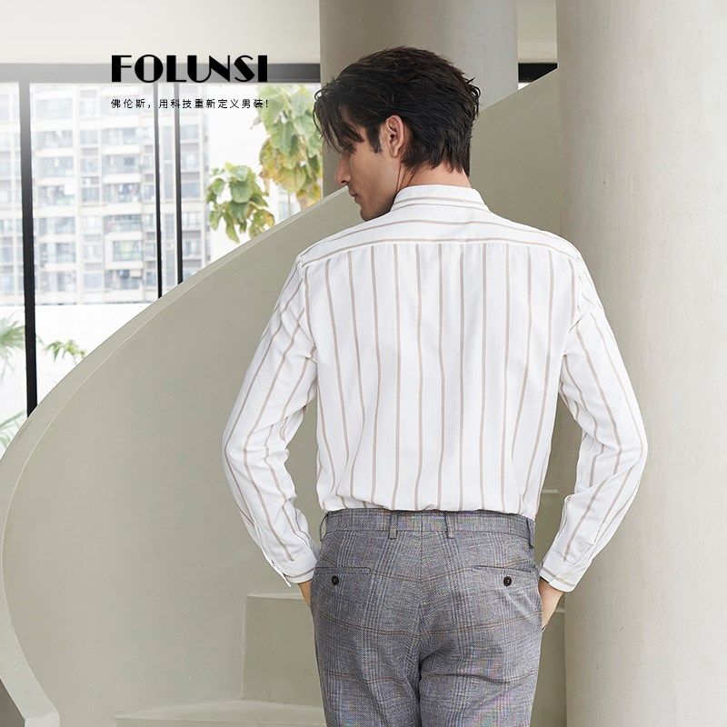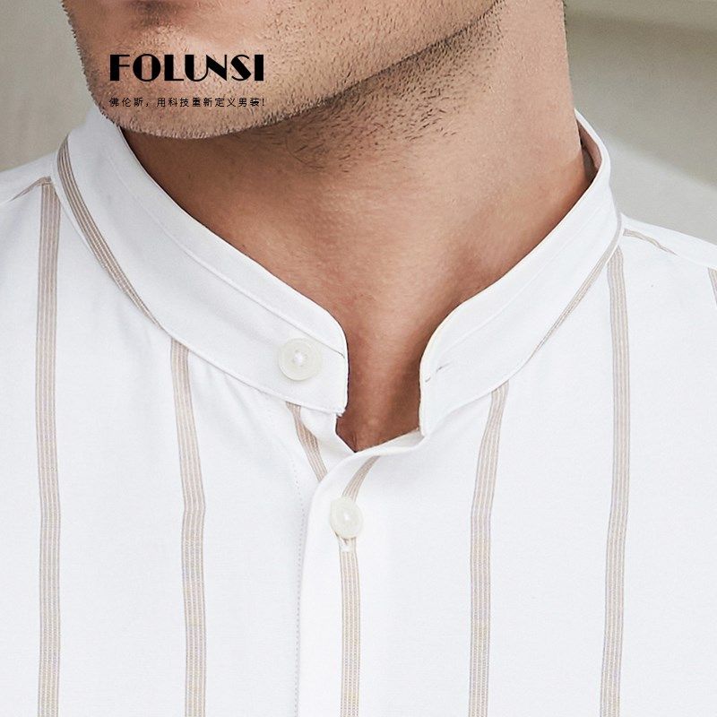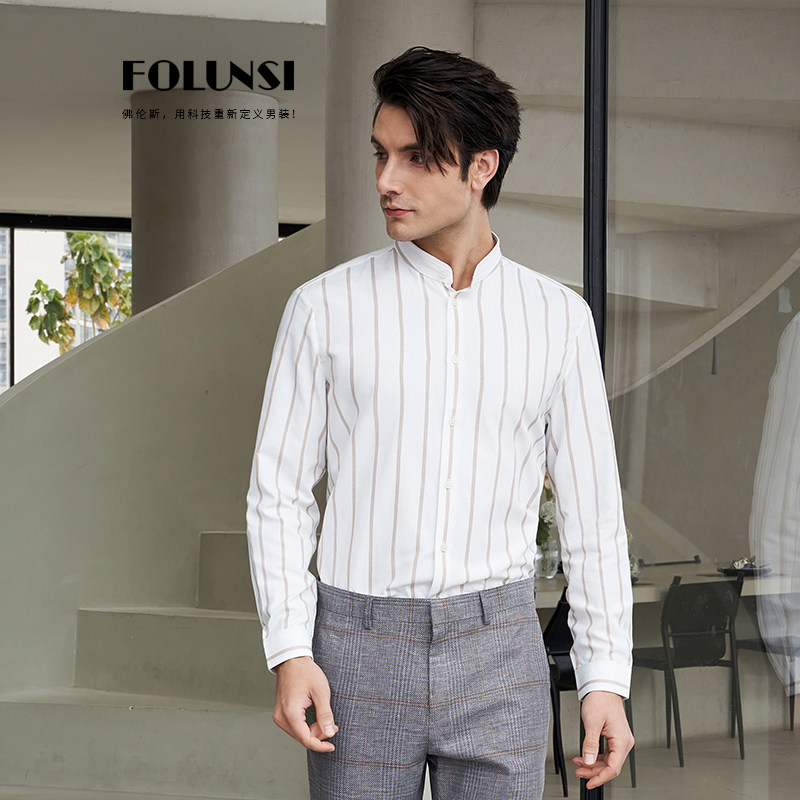 佛伦斯folunsi新款男衬衣春秋款商务绅士立领白色时尚长袖衬衫