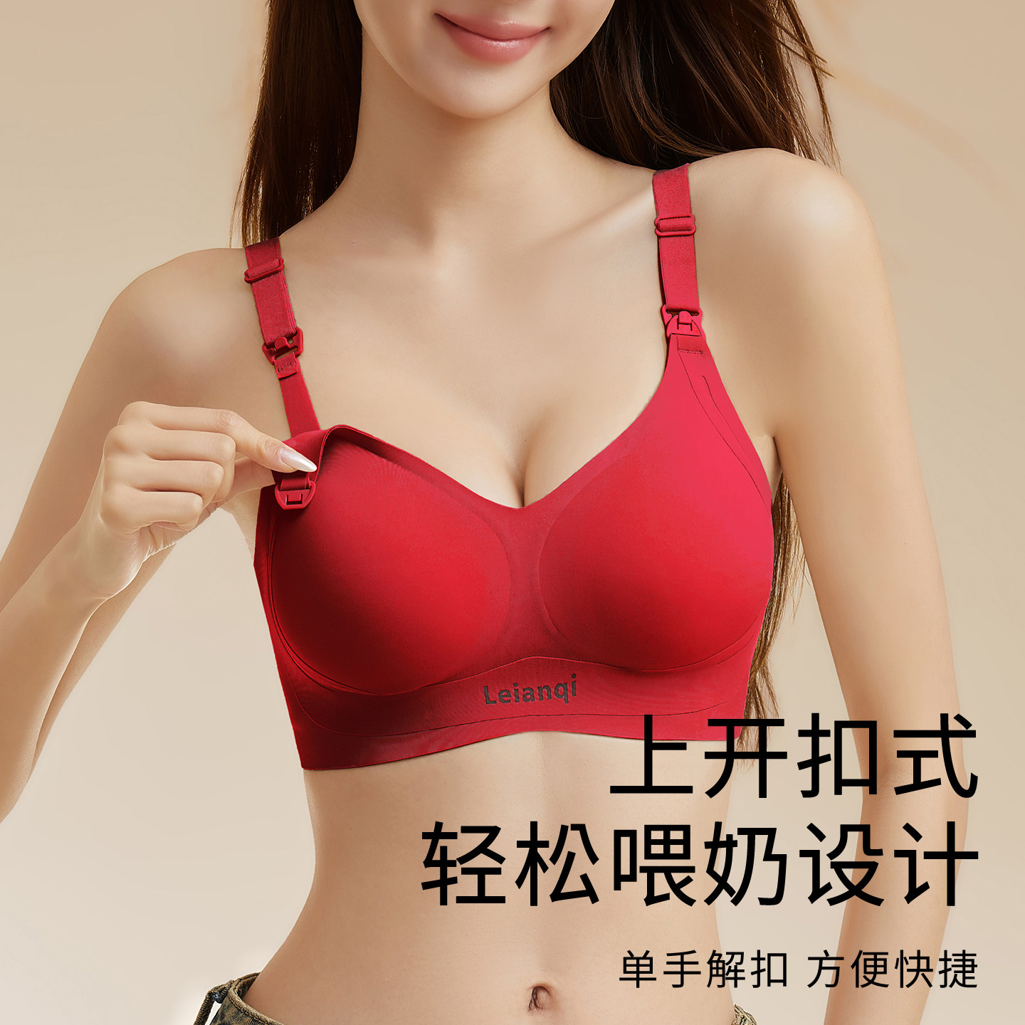红色孕妇哺乳内衣裤套装