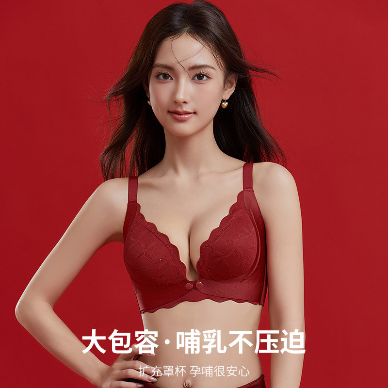 红色孕妇哺乳内衣裤套装聚拢防下垂产后喂奶专用结婚本命年文胸罩